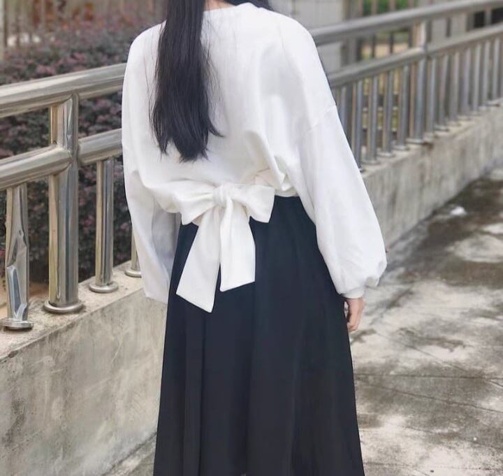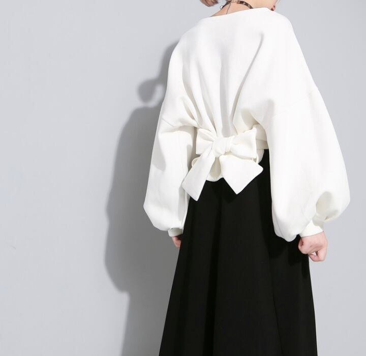ボリュームがある袖も可愛く、ショート丈なのでスカート、パンツとも合わせやすい丈です♪