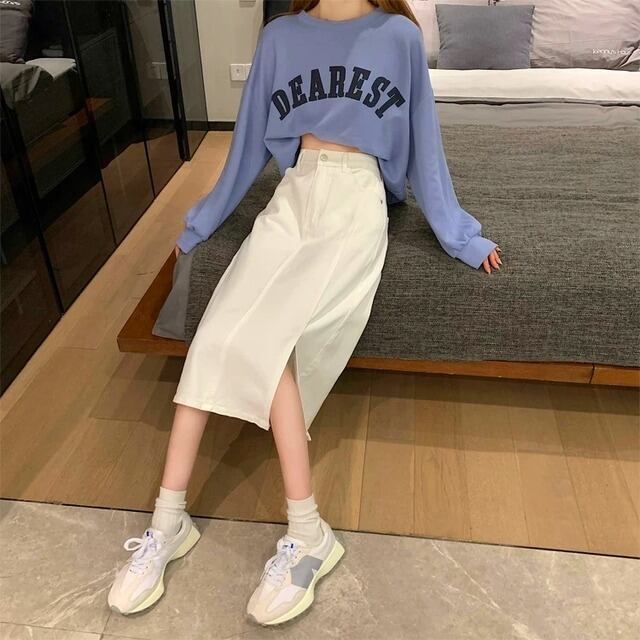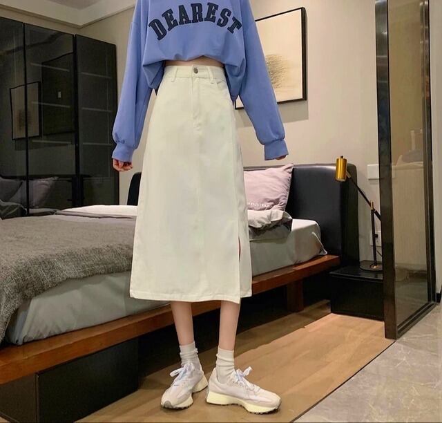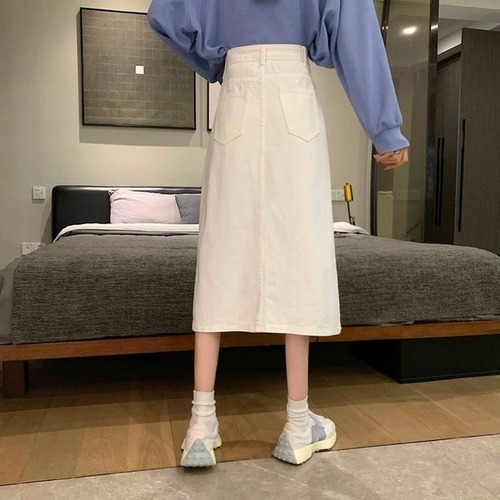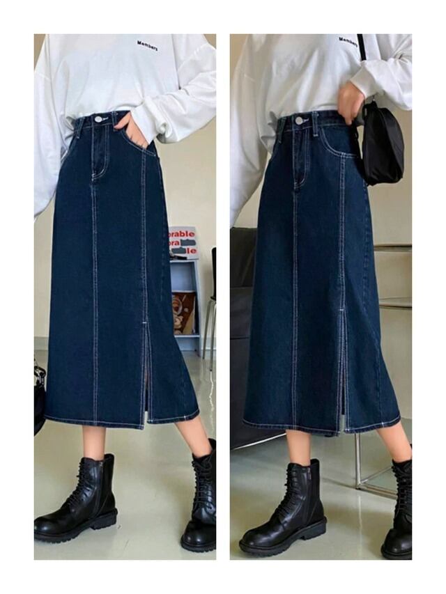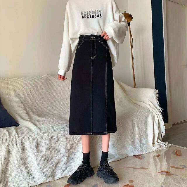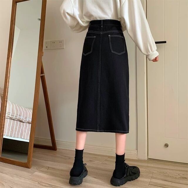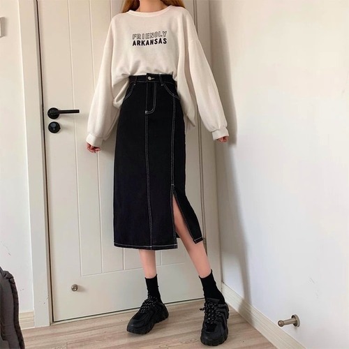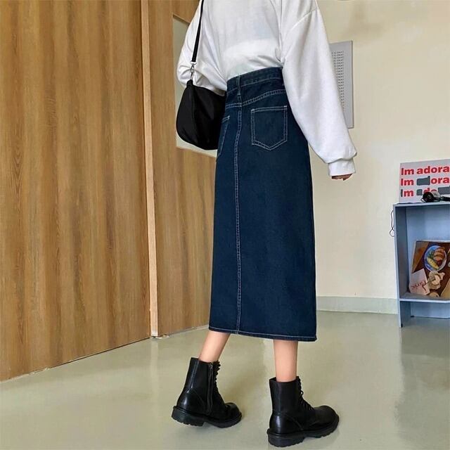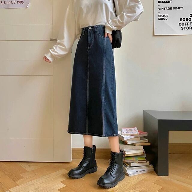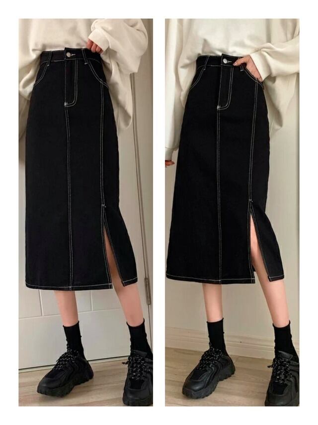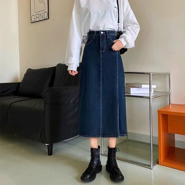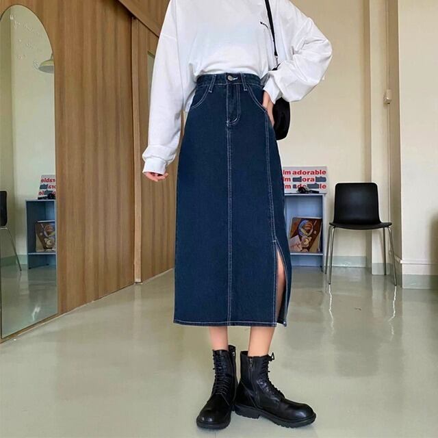 デニム ロングスカート スリット 3color