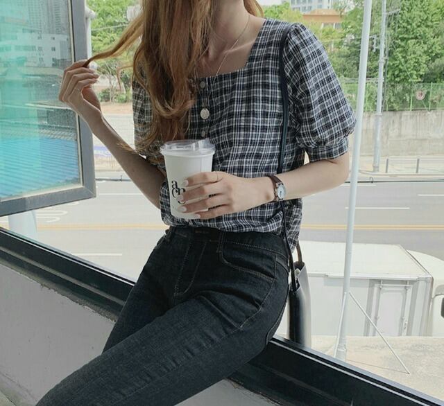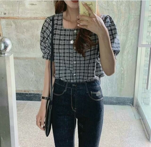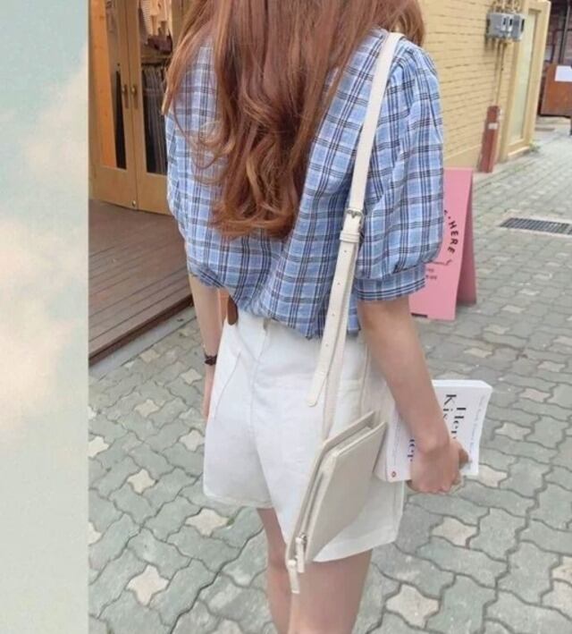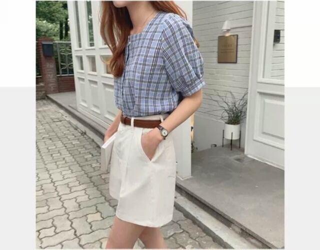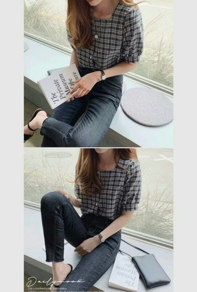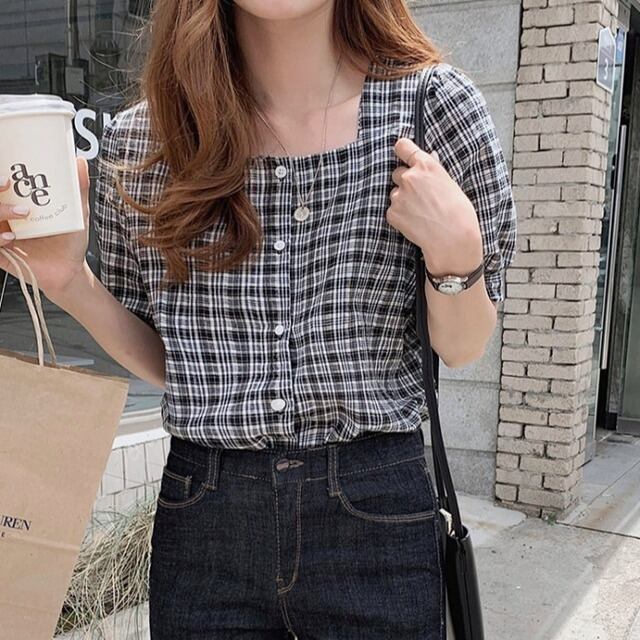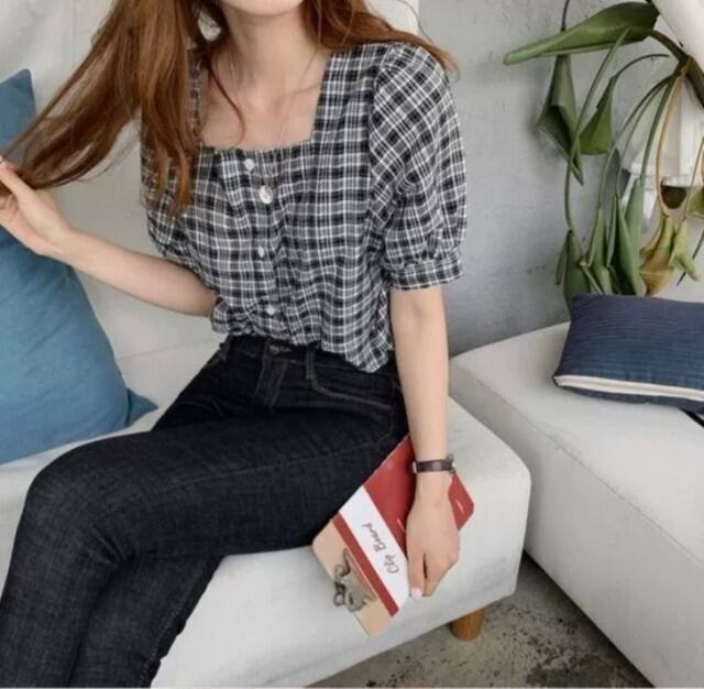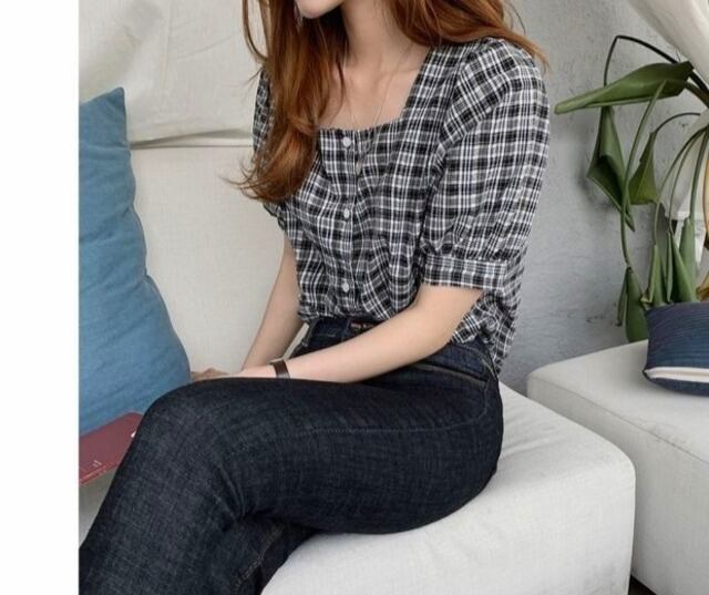 毎年使えるチェック柄半袖ブラウス♪