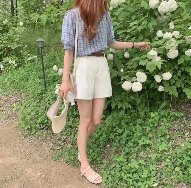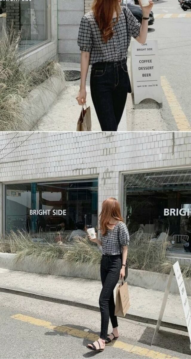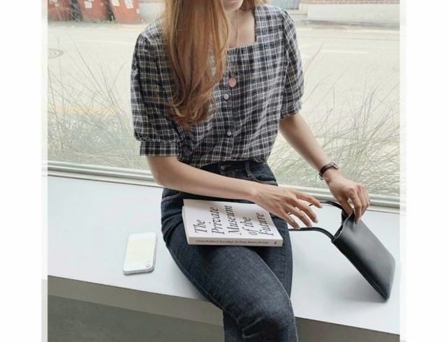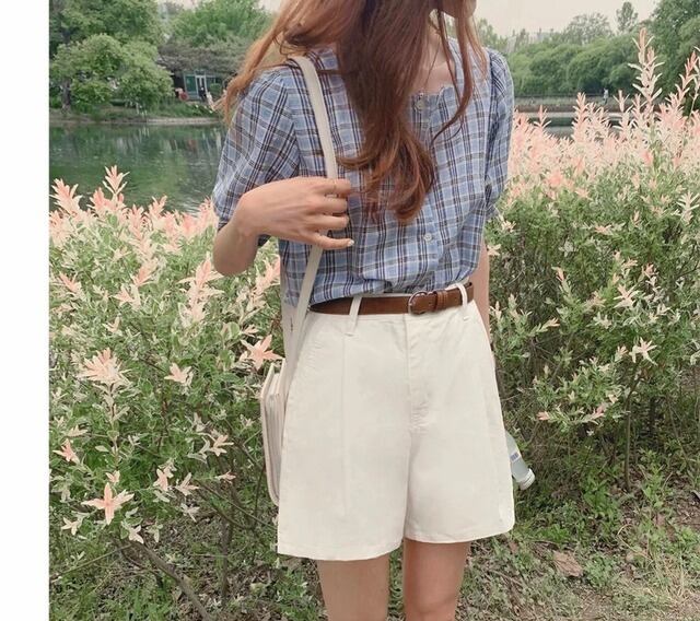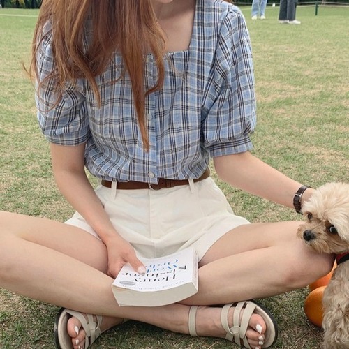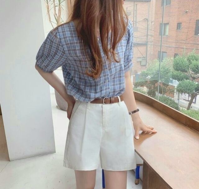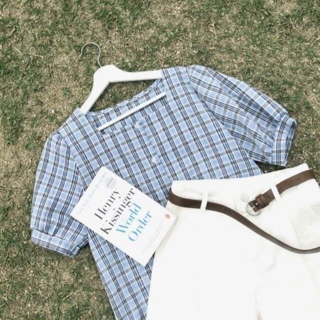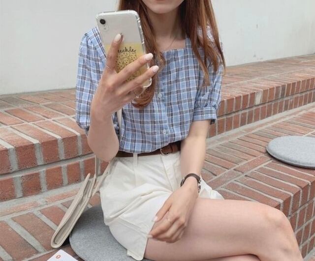 毎年使えるチェック柄半袖ブラウス♪