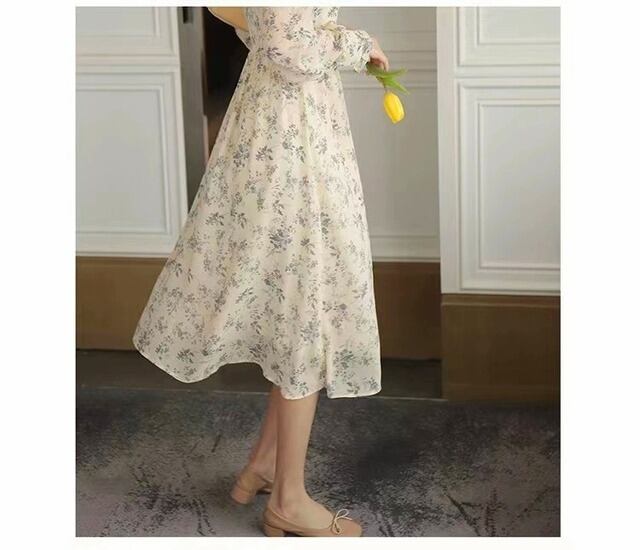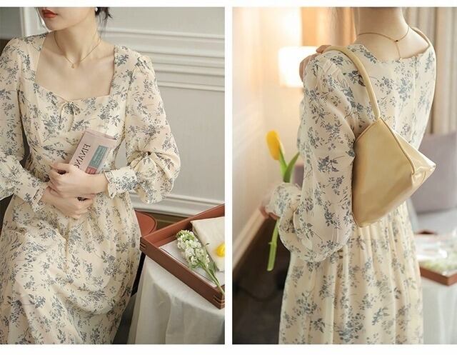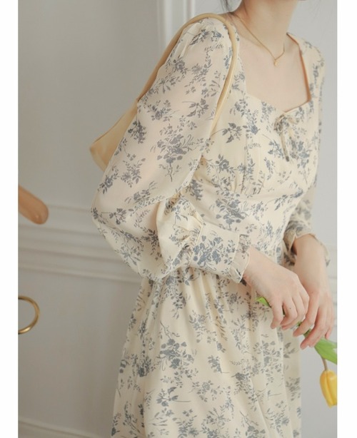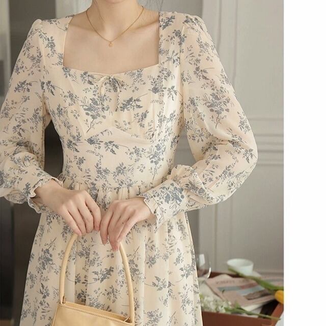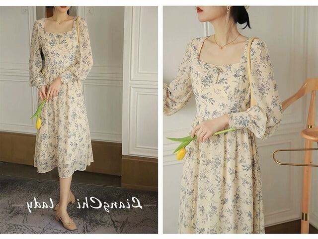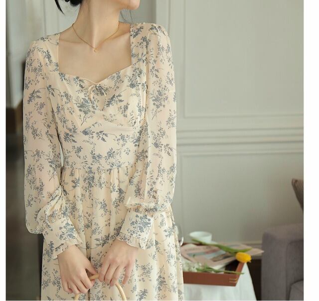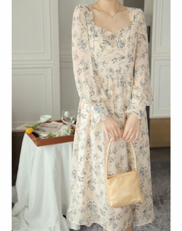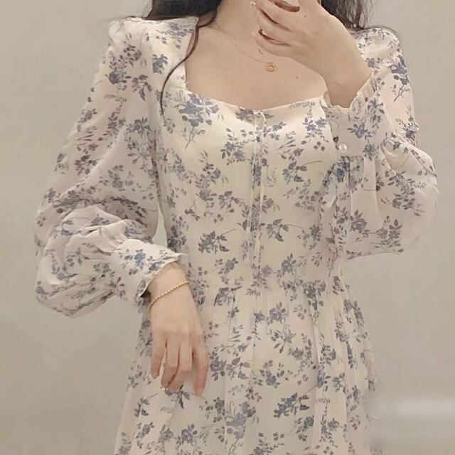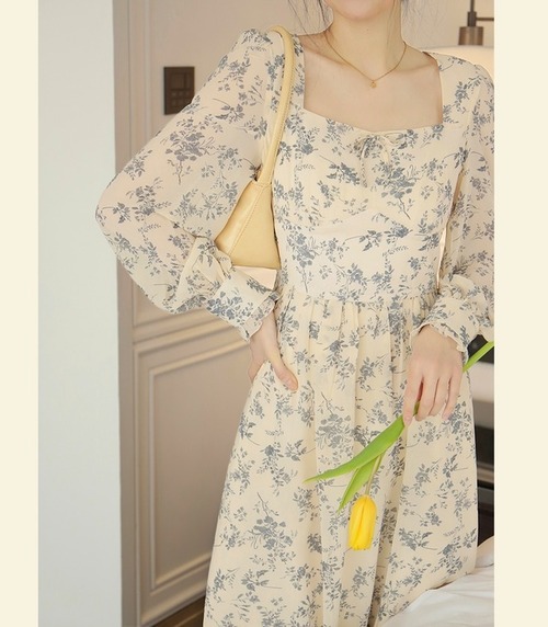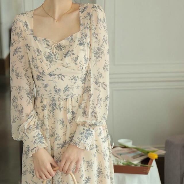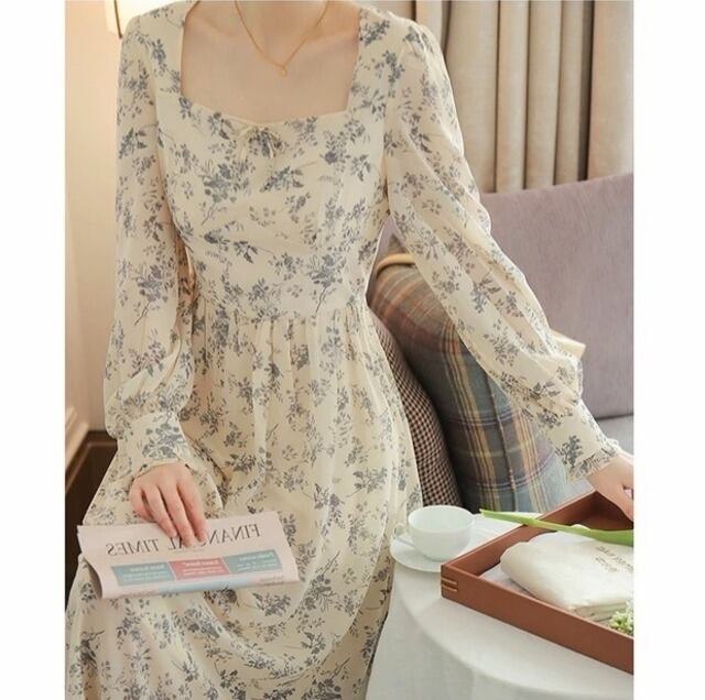 大人っぽく上品な花柄ロング丈ワンピース☆