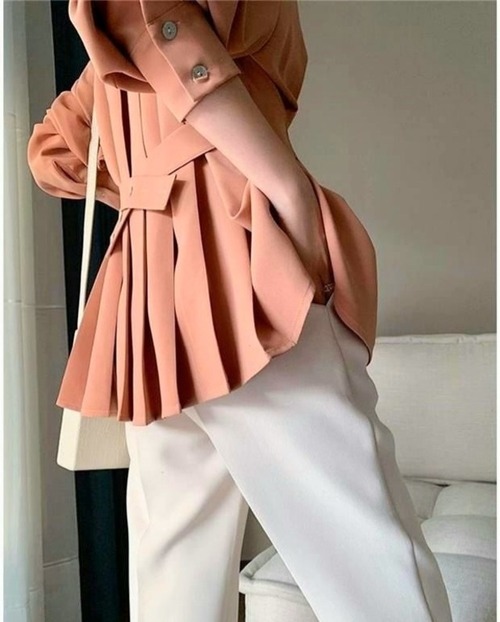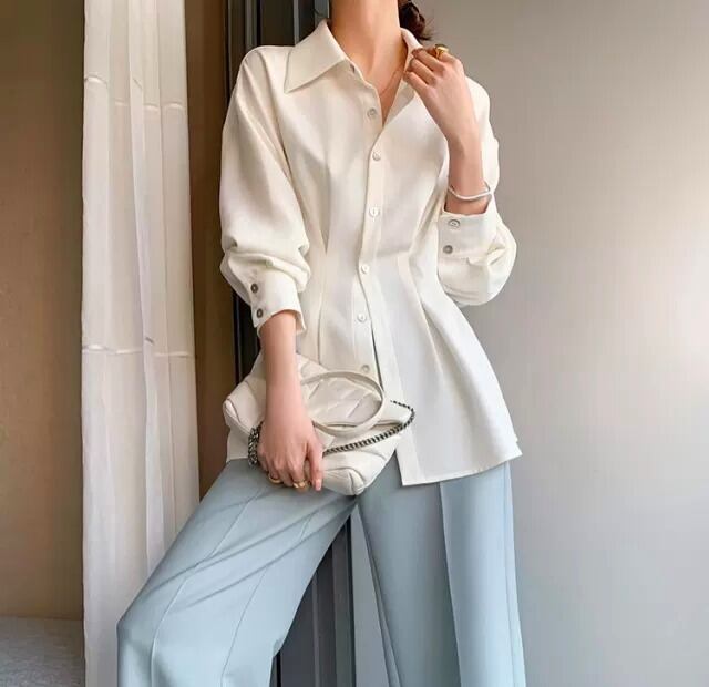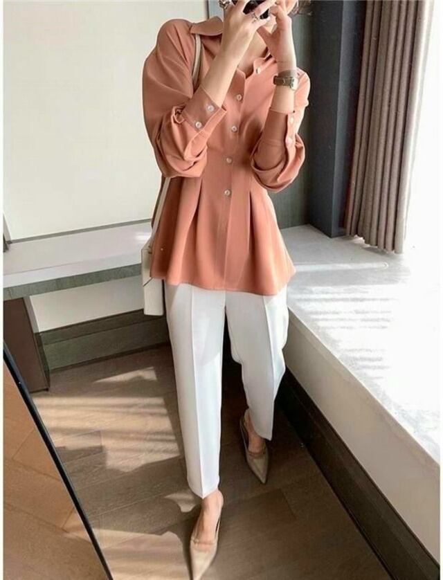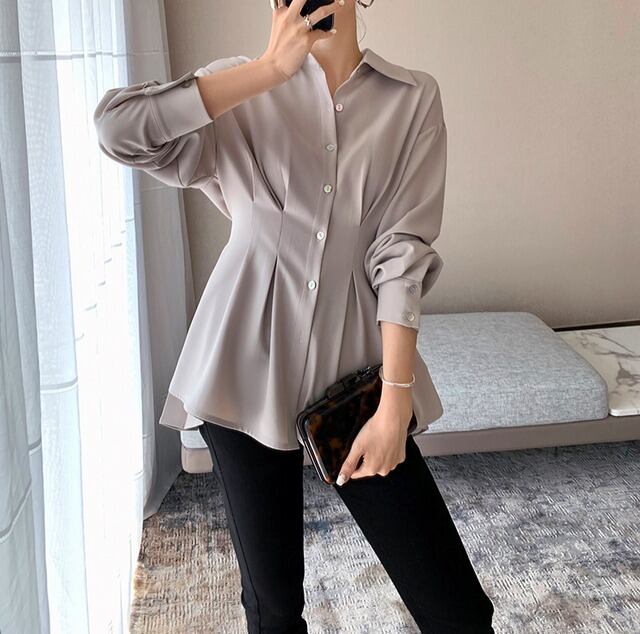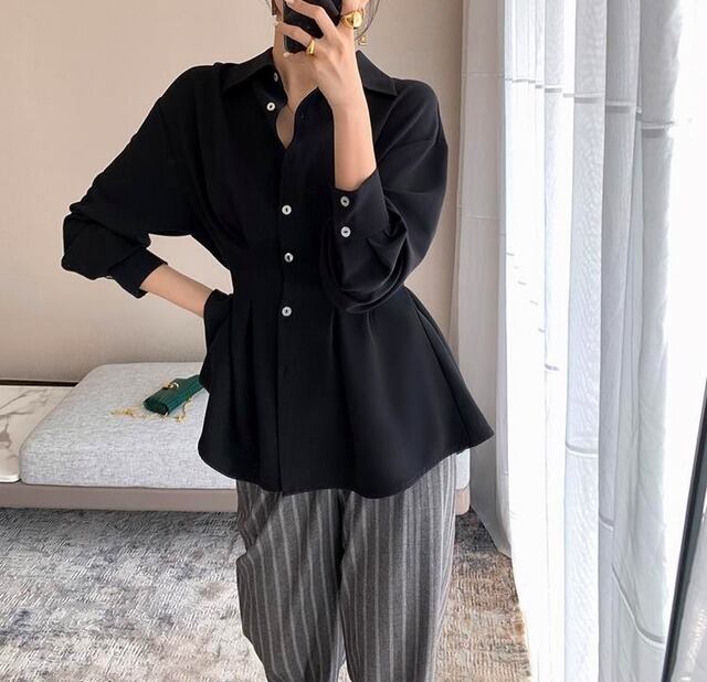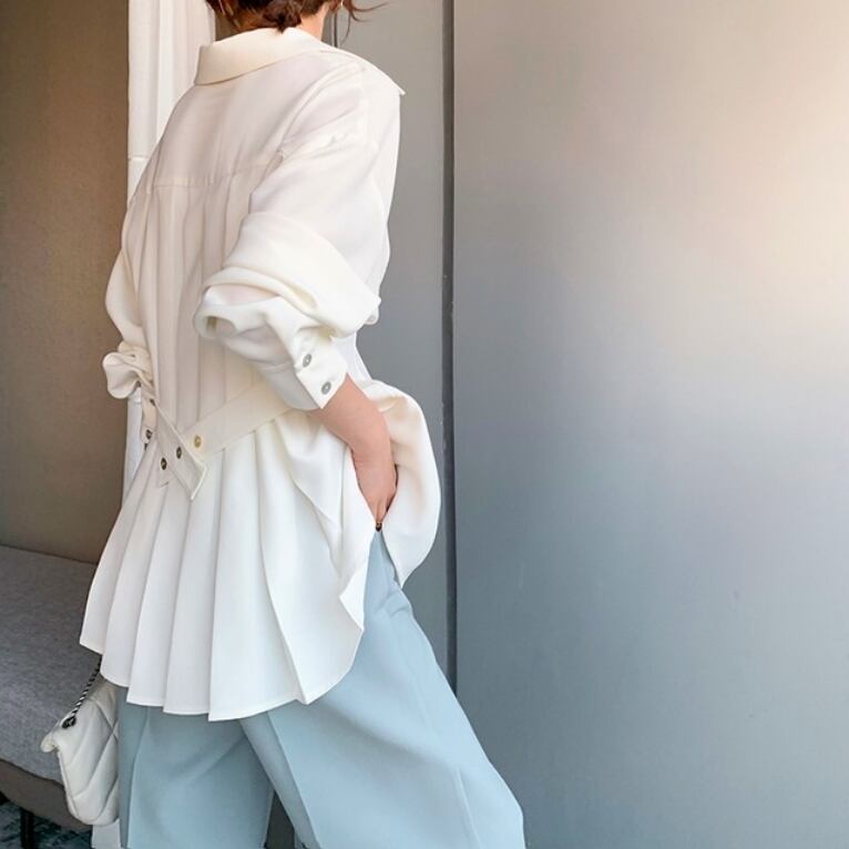 ウエストマークされたデザインとバックボタンのベルトがスタイルUPも実現してくれます♪