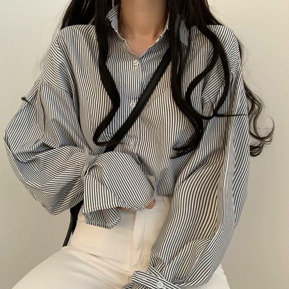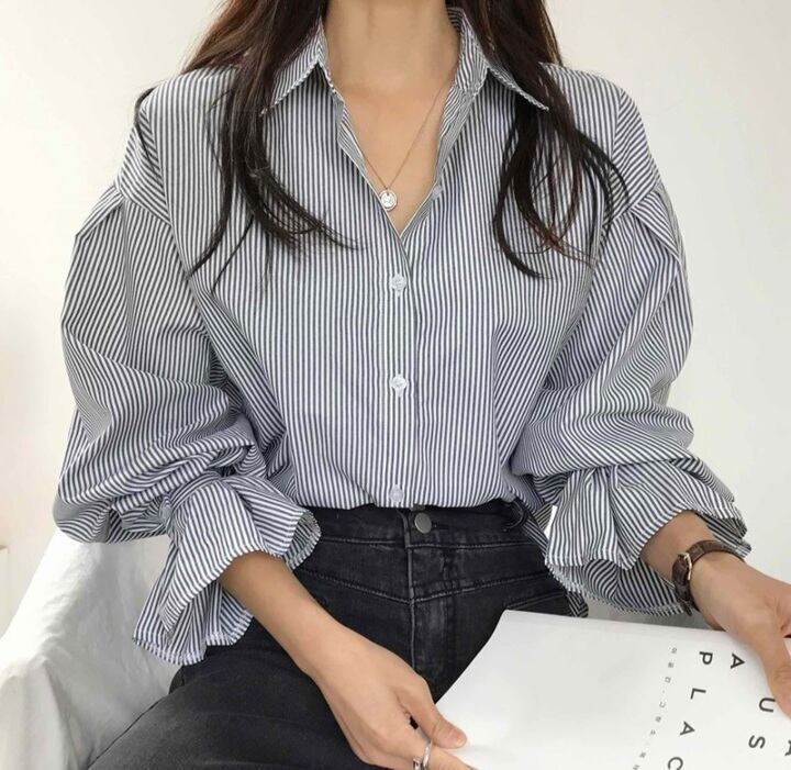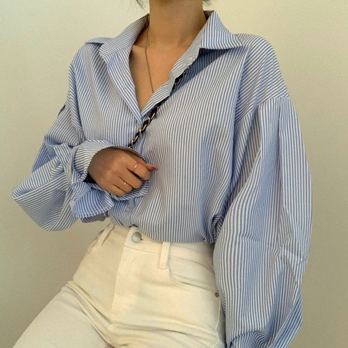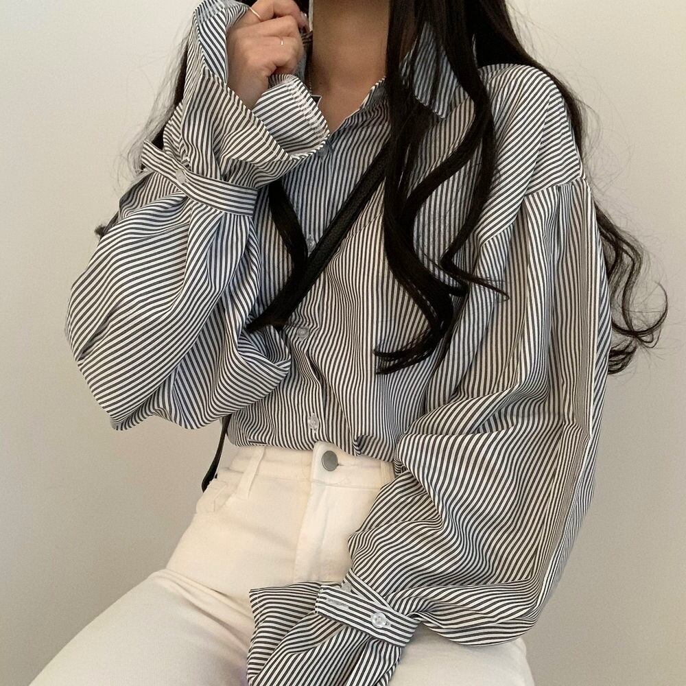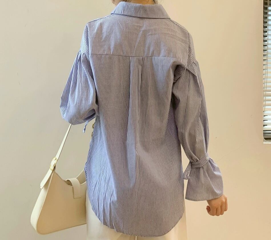 ボリュームがあるキャンディスリーブのストライプ柄シャツ☆