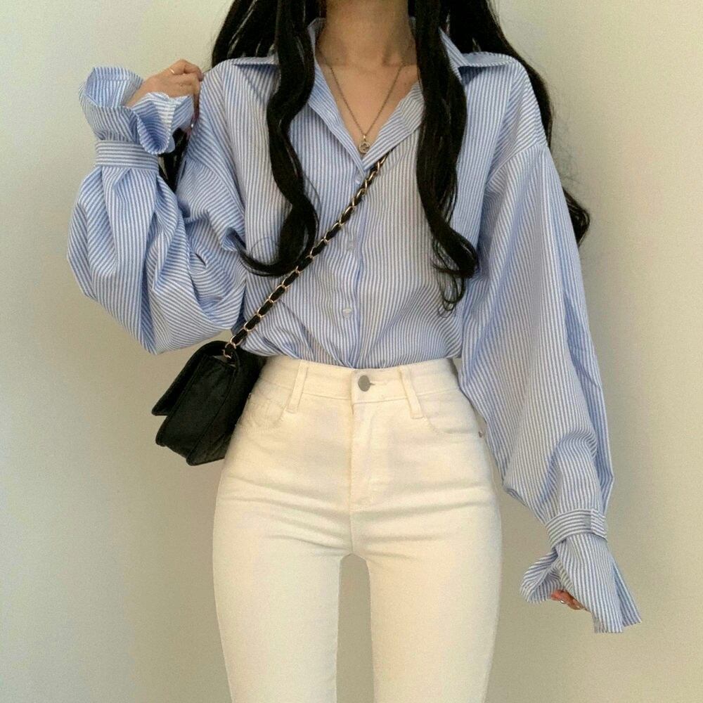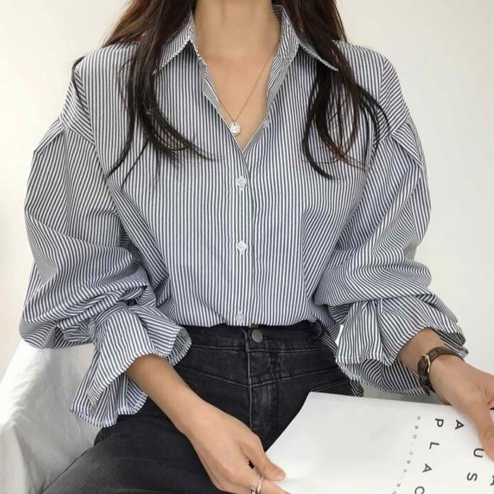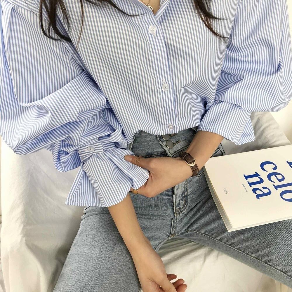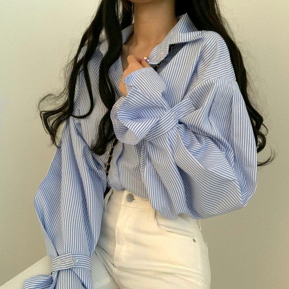 ボリュームがあるキャンディスリーブのストライプ柄シャツ☆