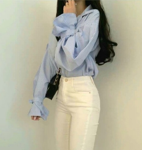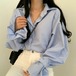 メンズライクなシャツをキャンディスリーブが可愛くしてくれます♪