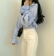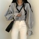 ストライプ柄 キャンディスリーブ ブラウス 2color