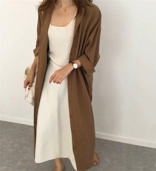 ロングワンピースとして、前を開けてロングカーディガンとして着るのもオススメ☆