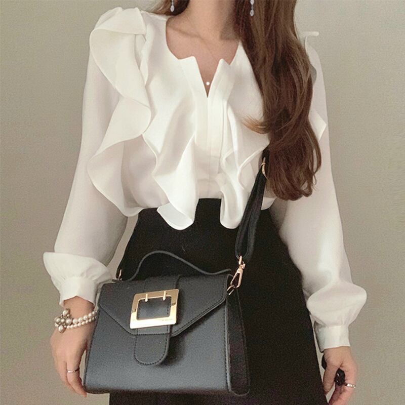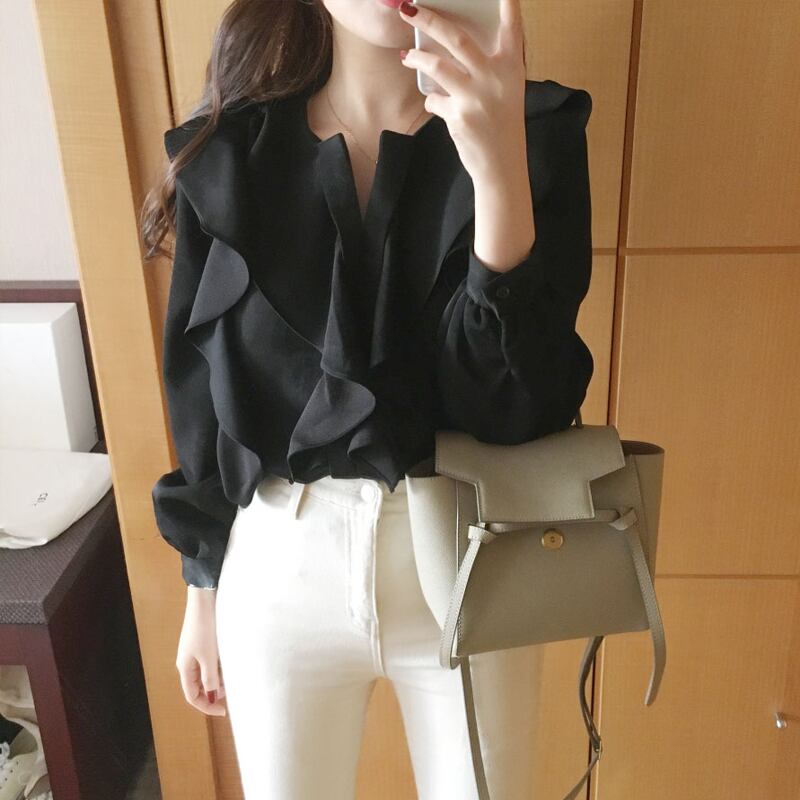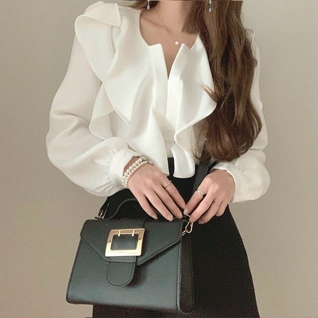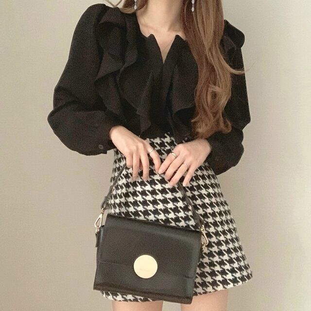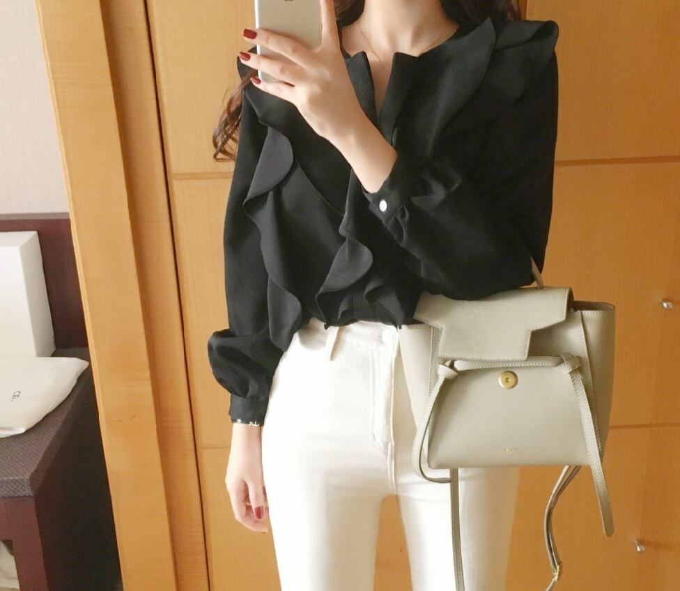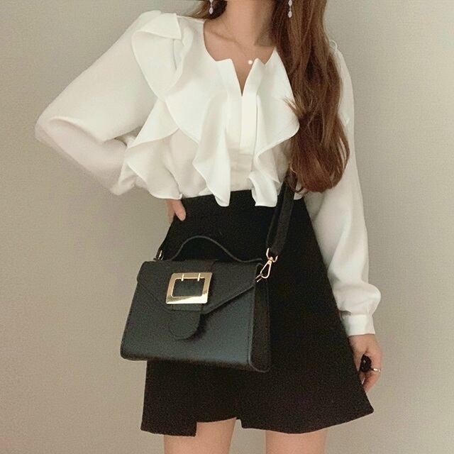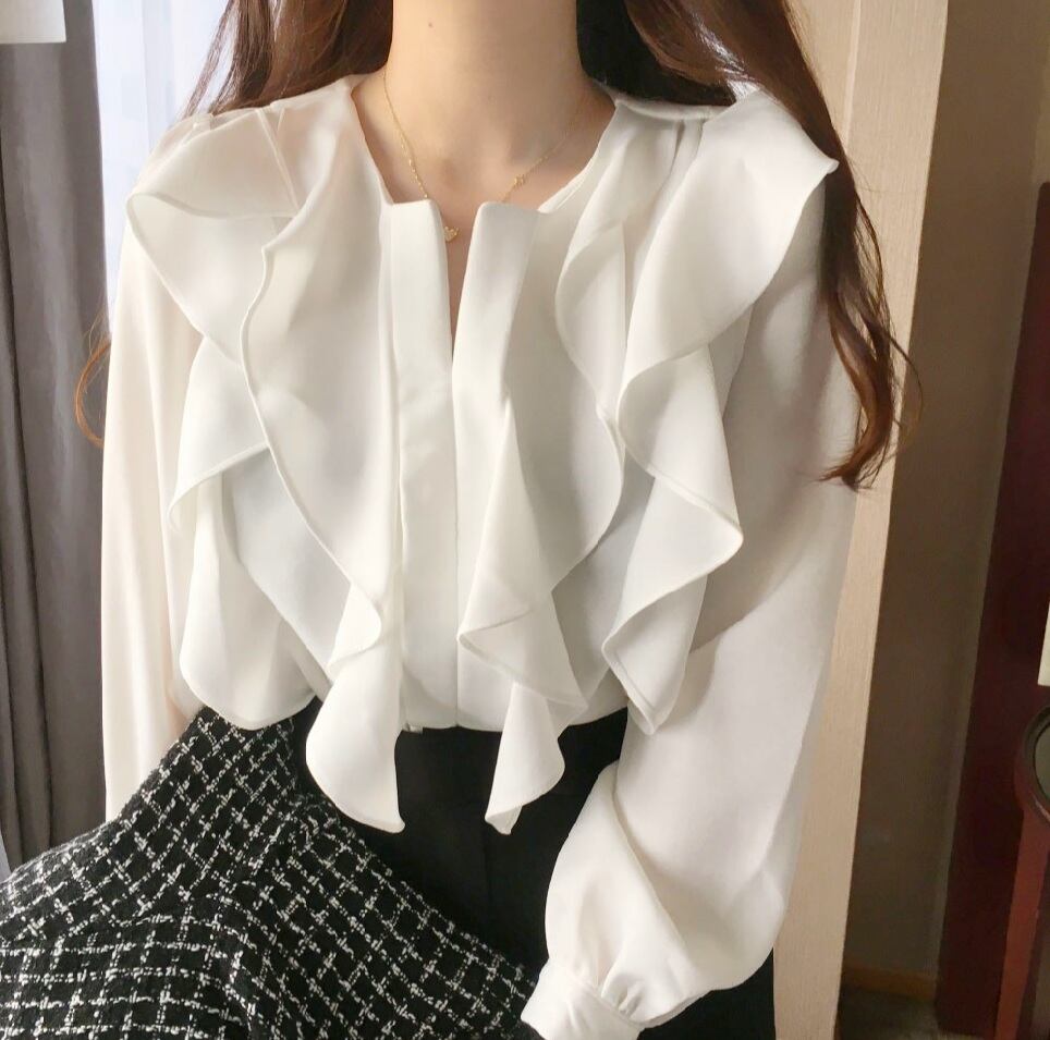 襟元のフリルがポイントのブラウス☆