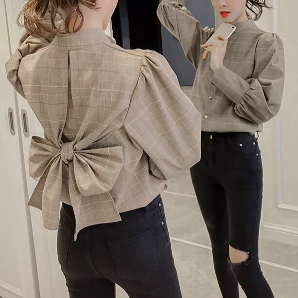 バックリボンが可愛いグレンチェックのブラウス☆