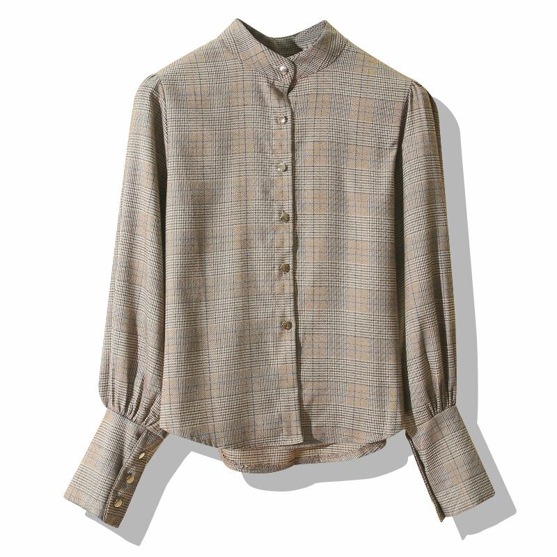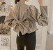 グレンチェック ブラウス バックリボン 2color