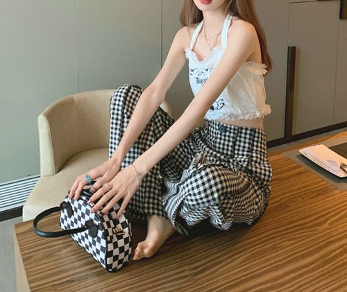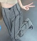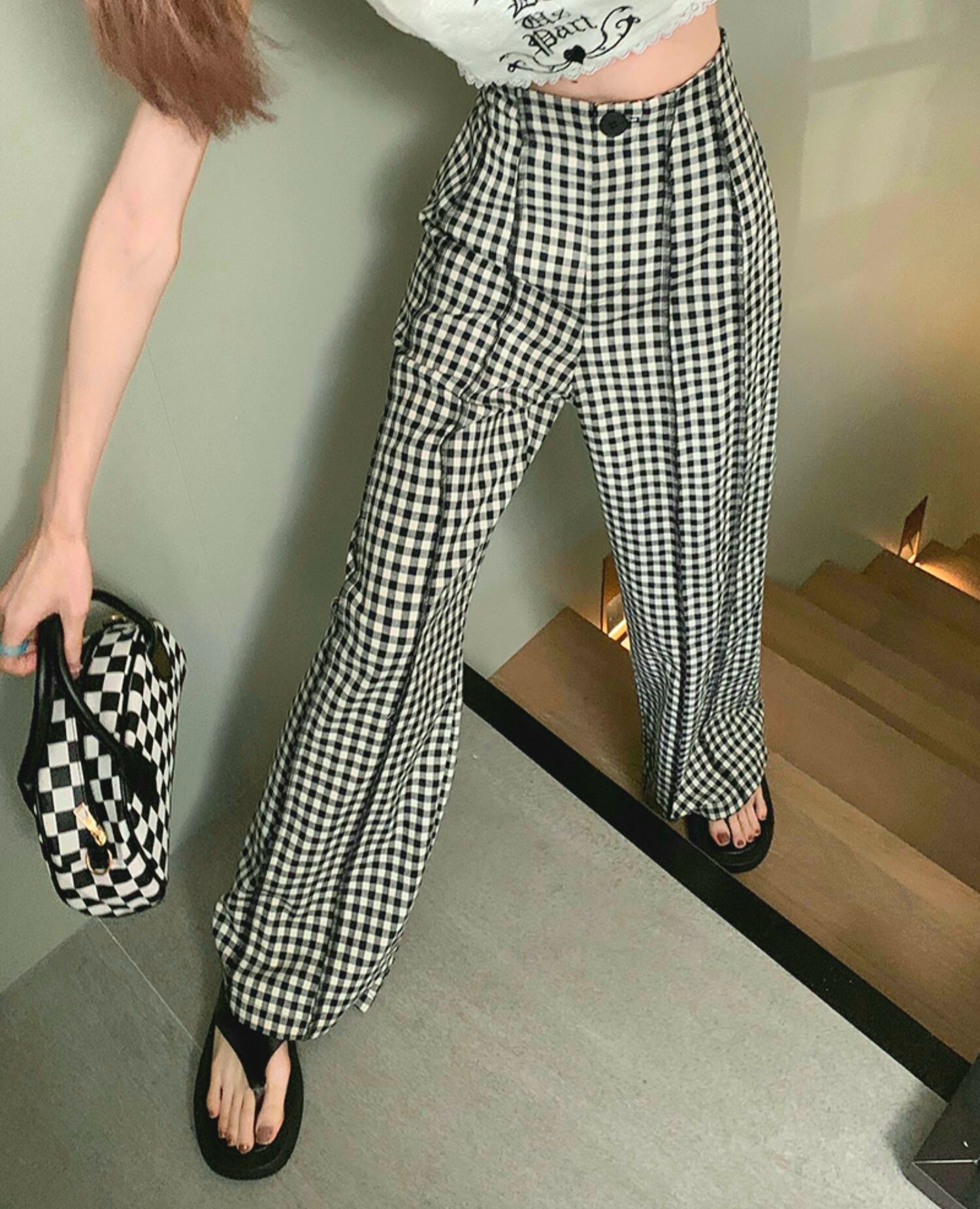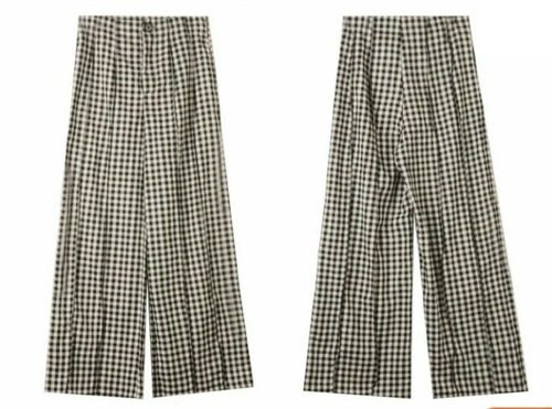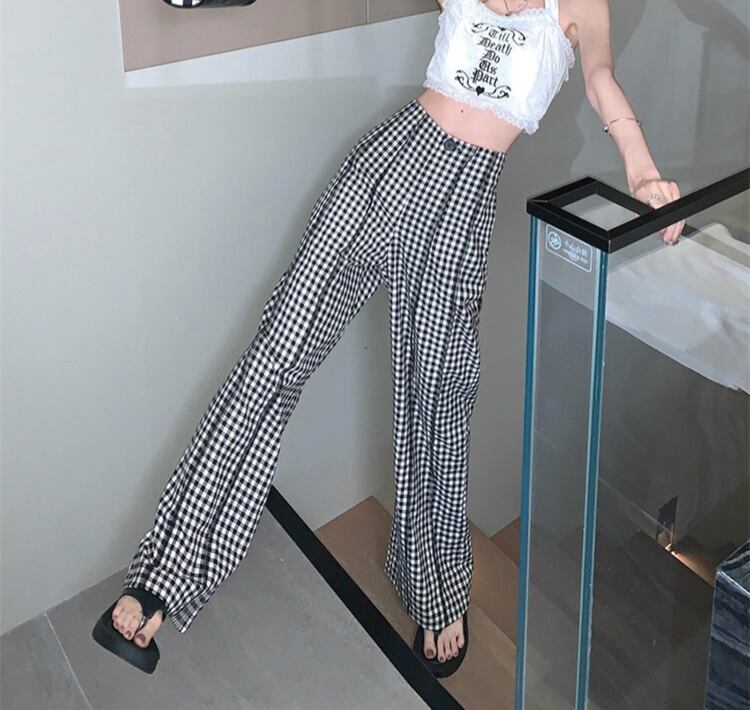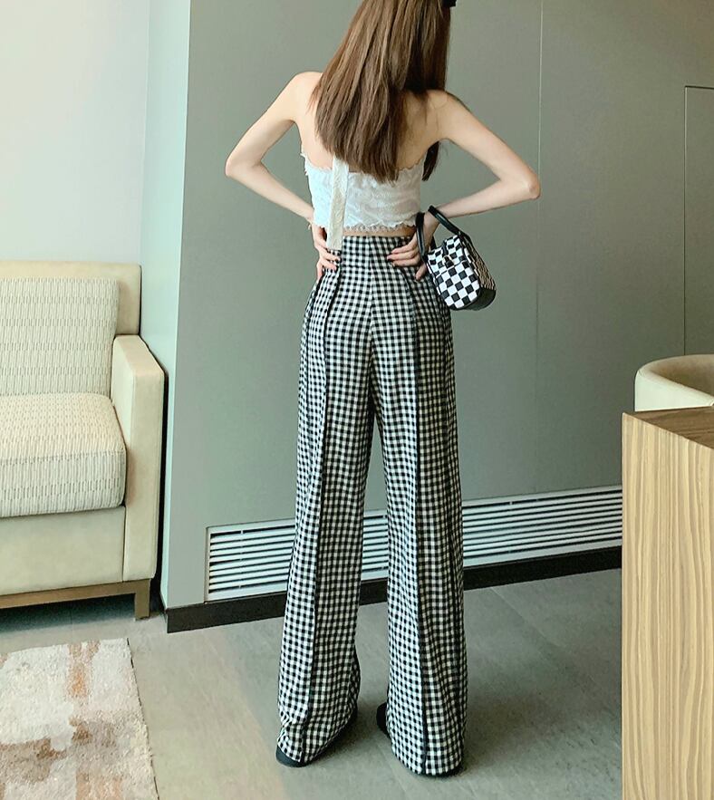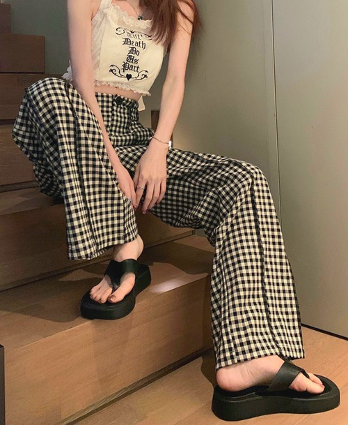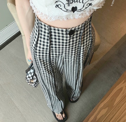 ギンガムチェック ハイウエスト ワイドパンツ