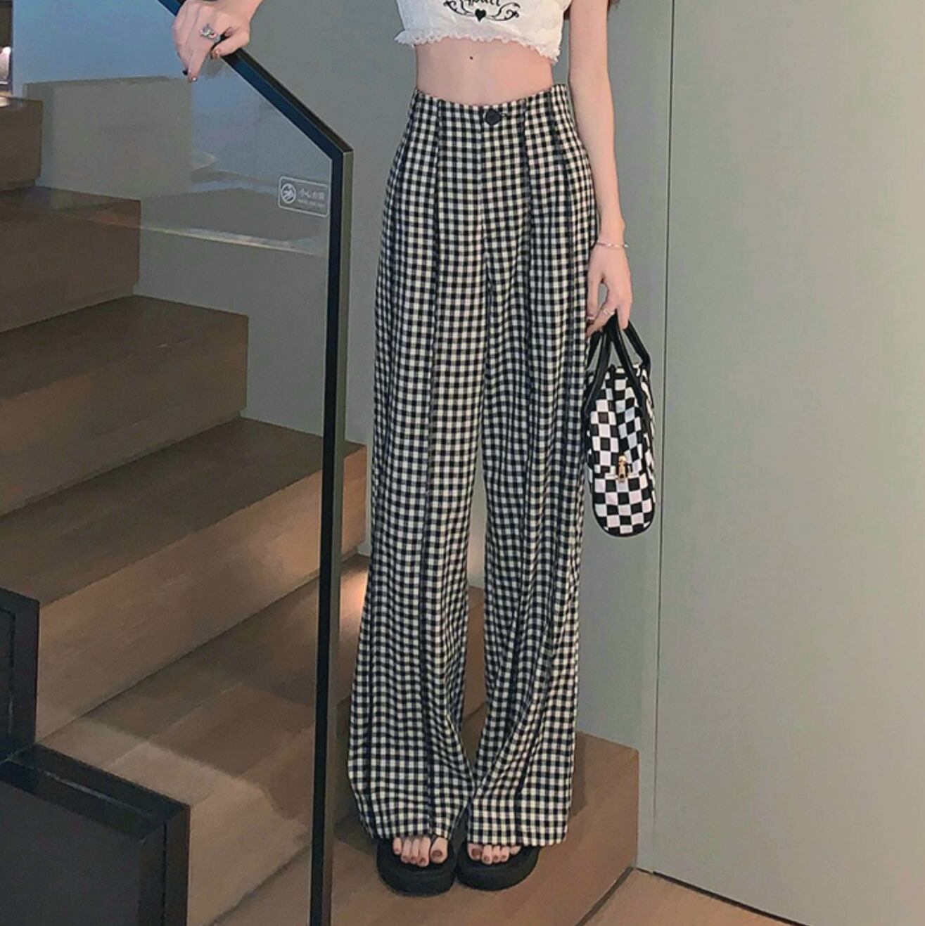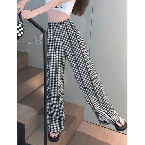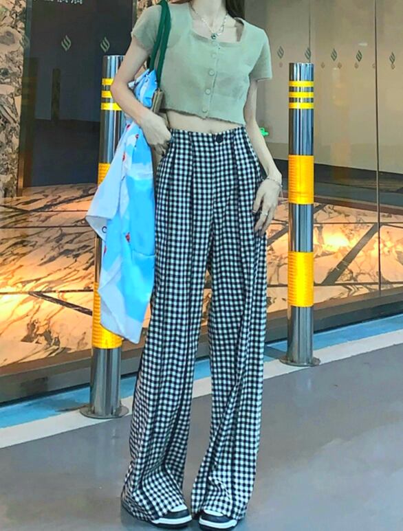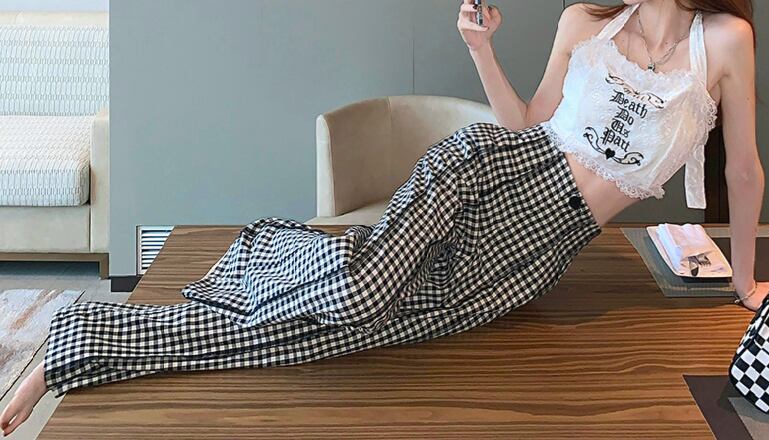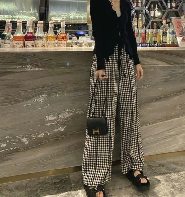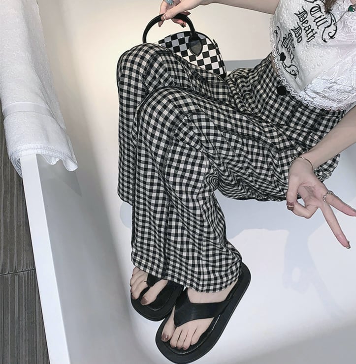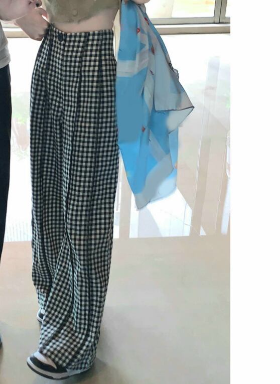 ギンガムチェック ハイウエスト ワイドパンツ