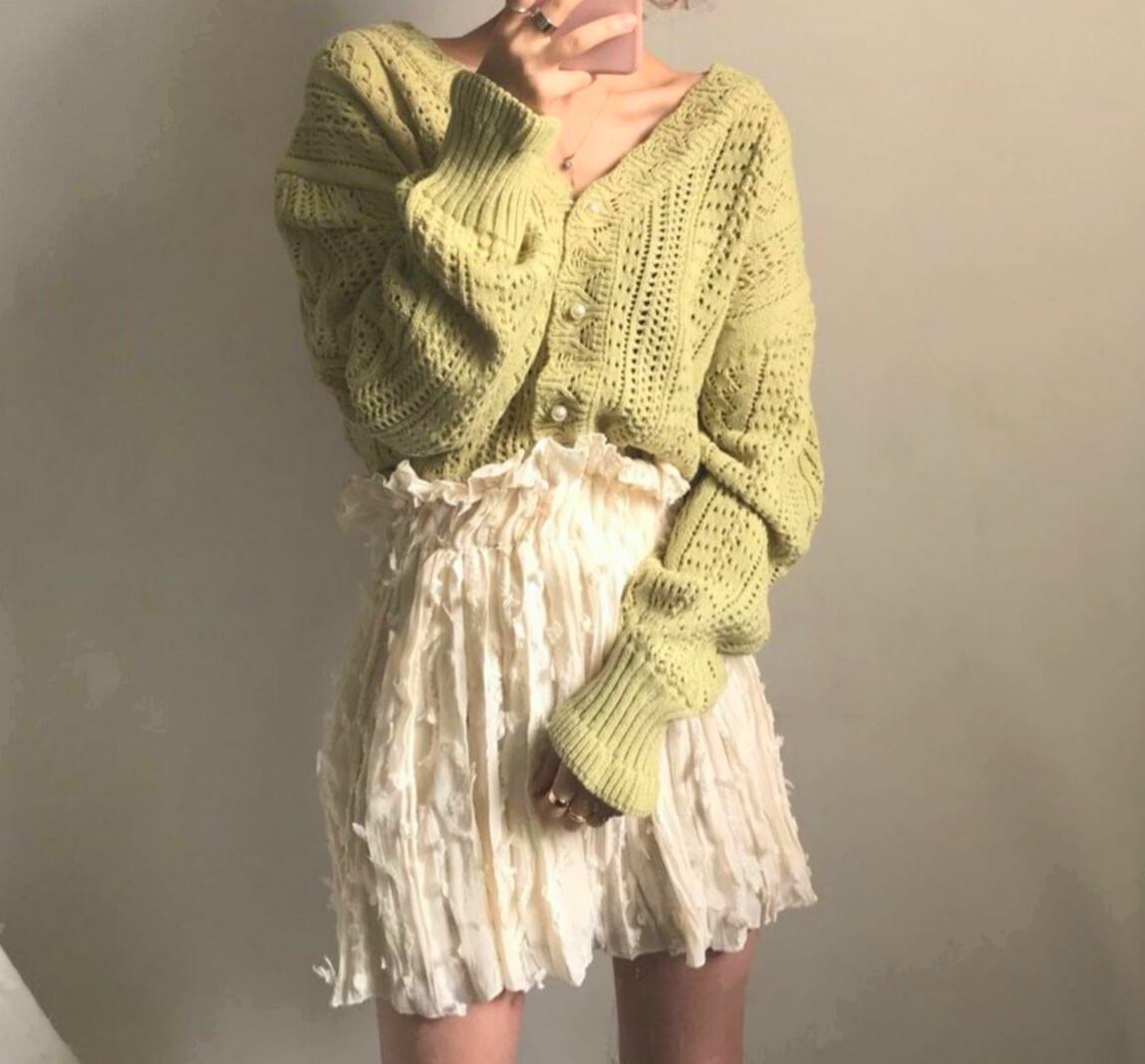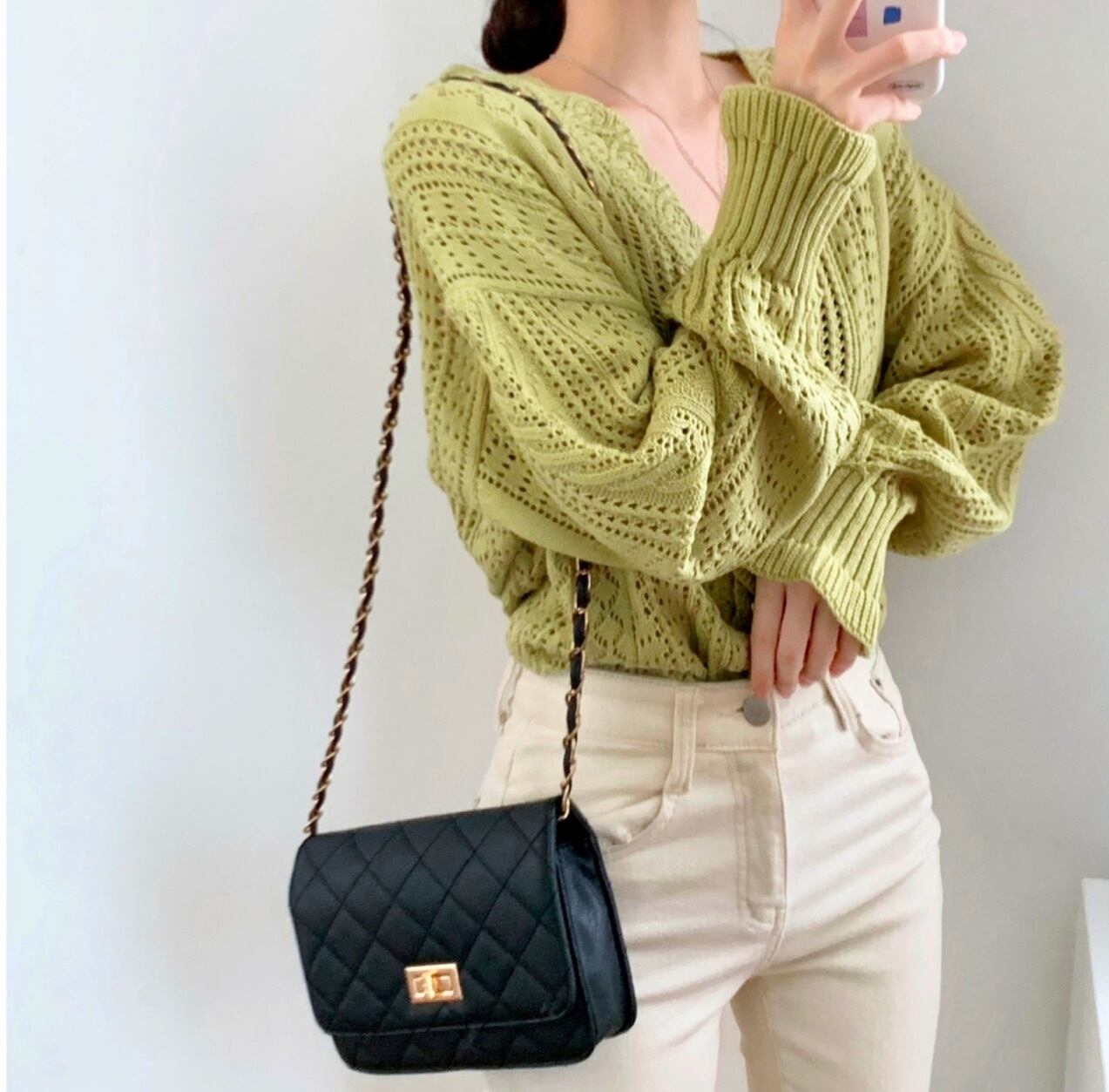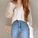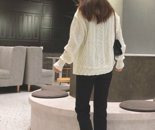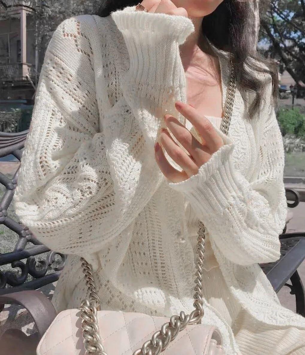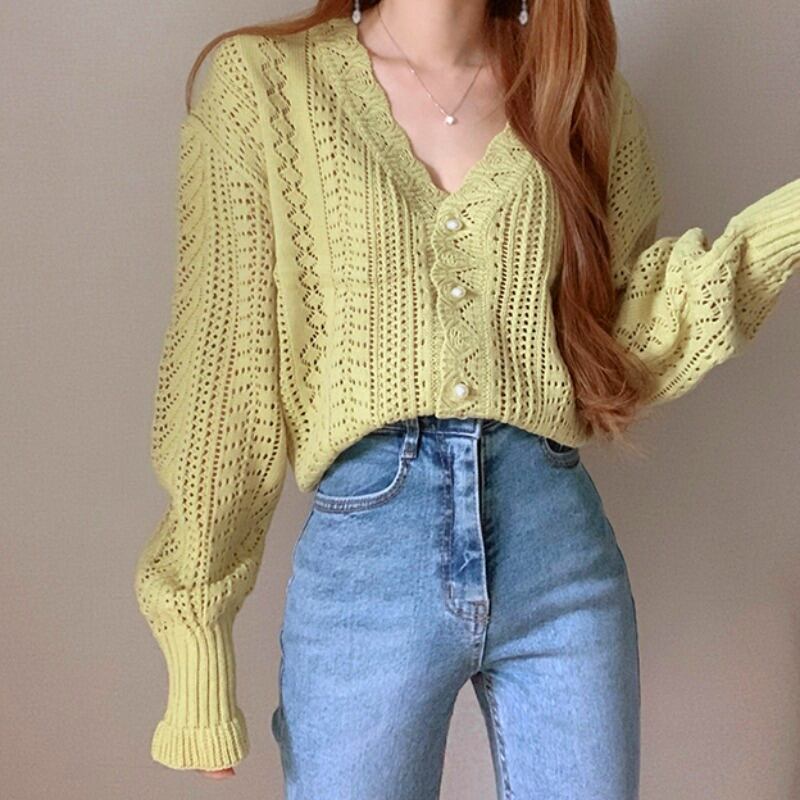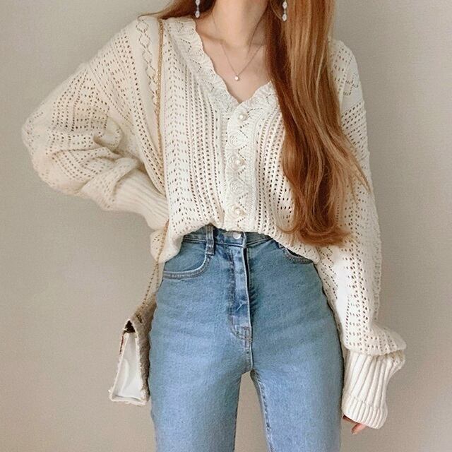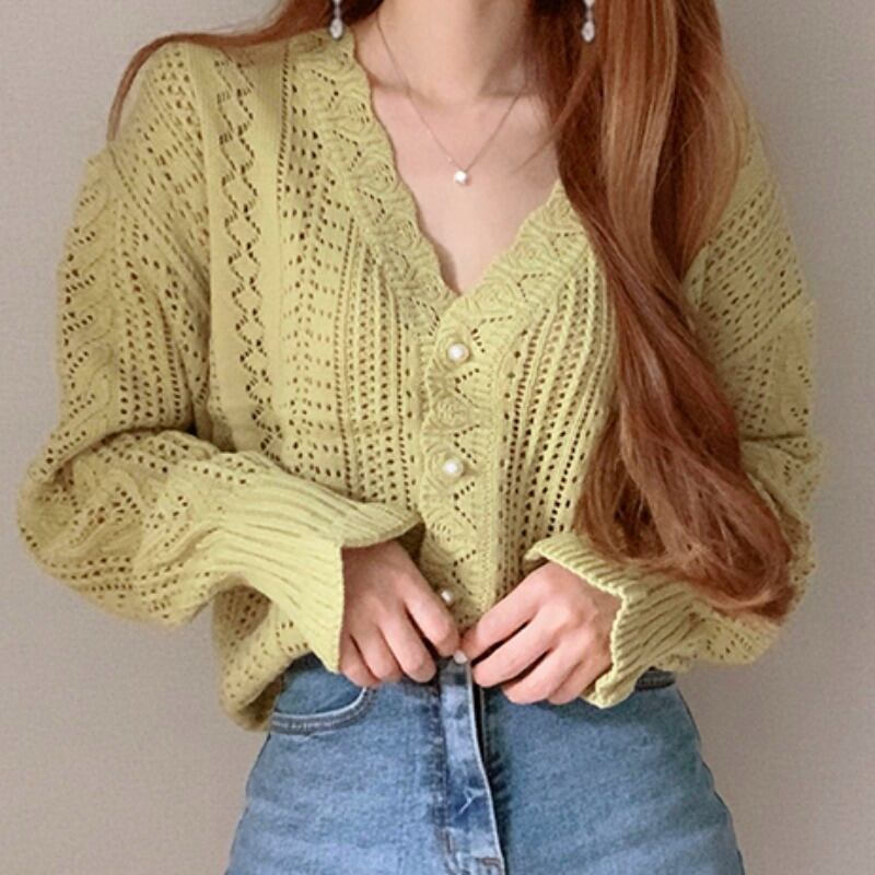 1枚で着ても羽織りとしても可愛いクロシェ編みのVネックカーディガン♪