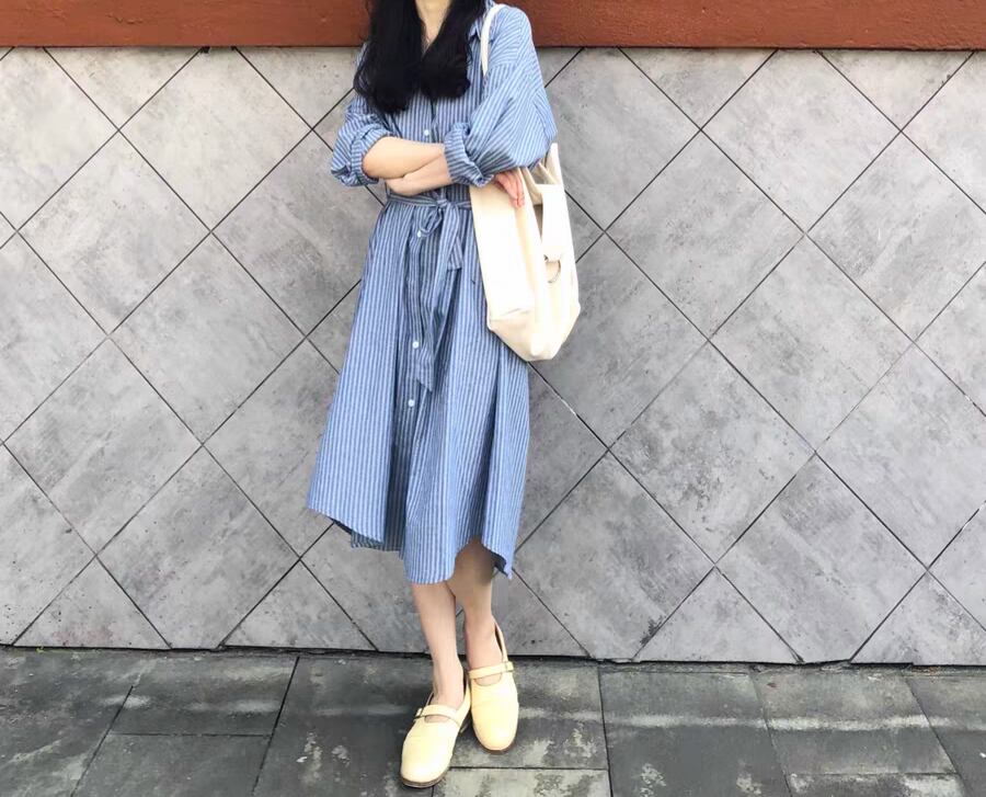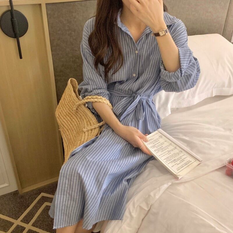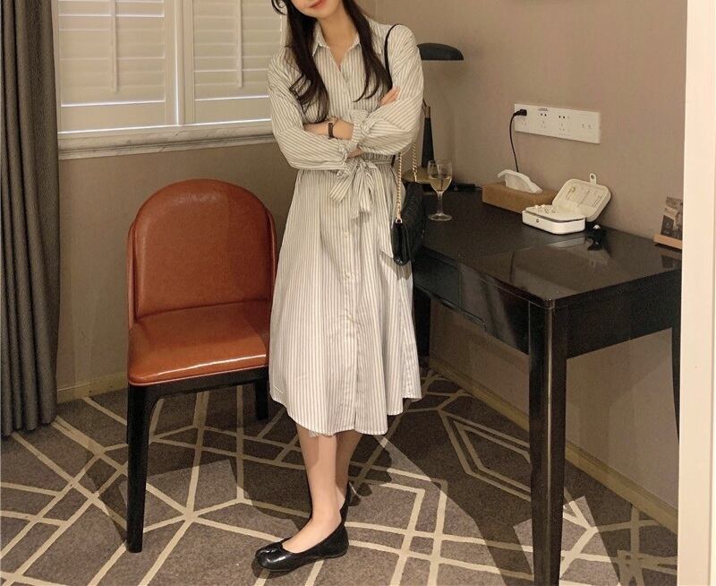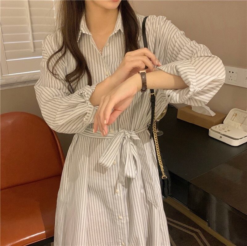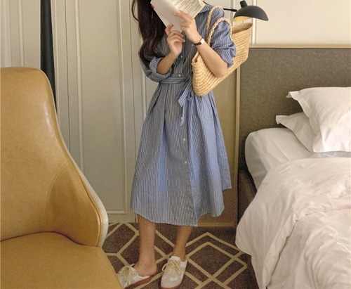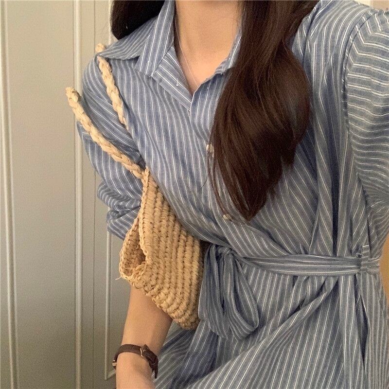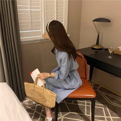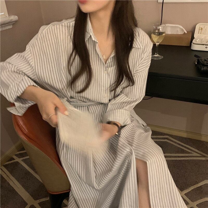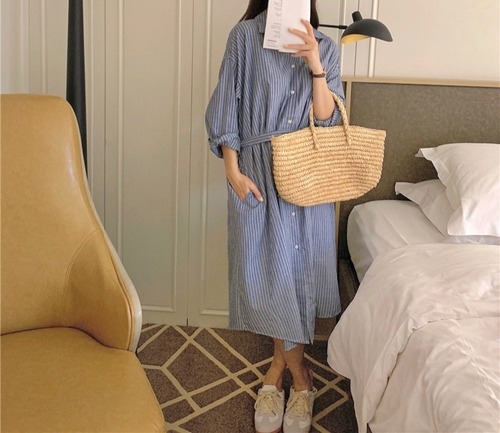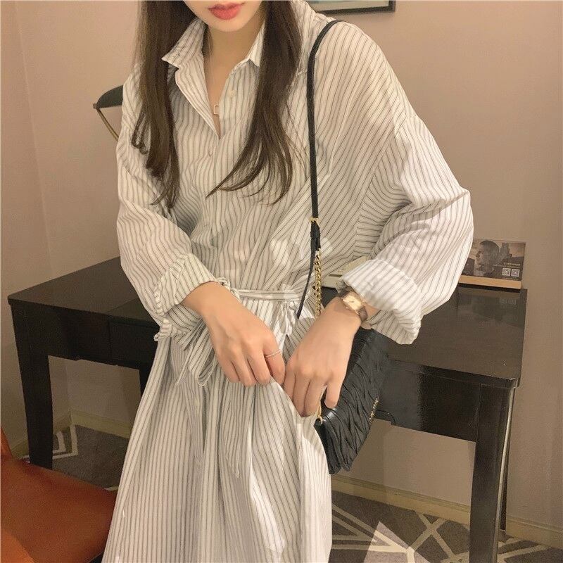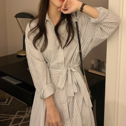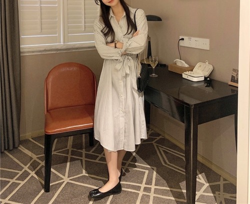 シンプルなデザインのストライプ柄ロングシャツ♪
