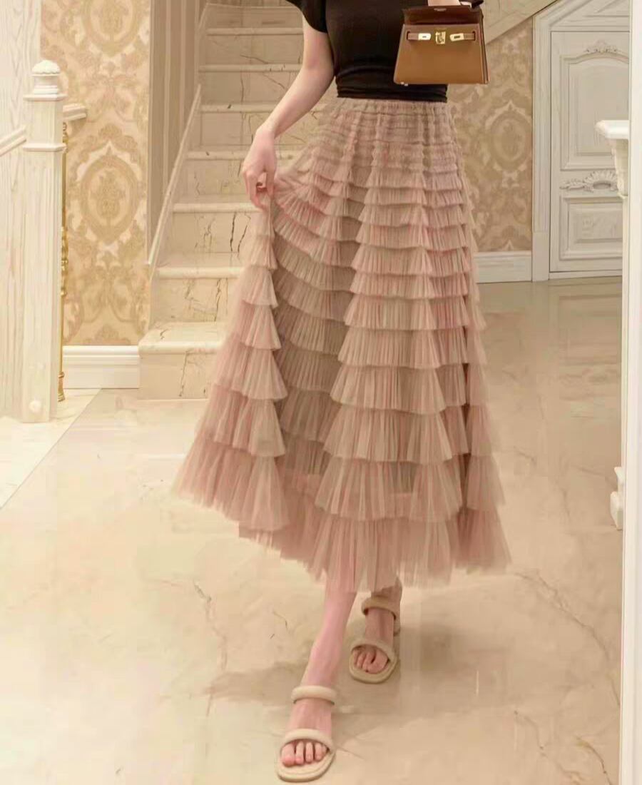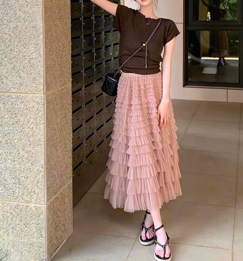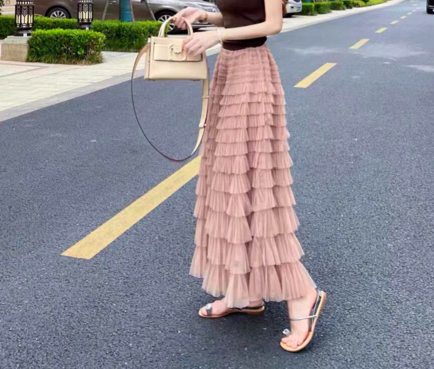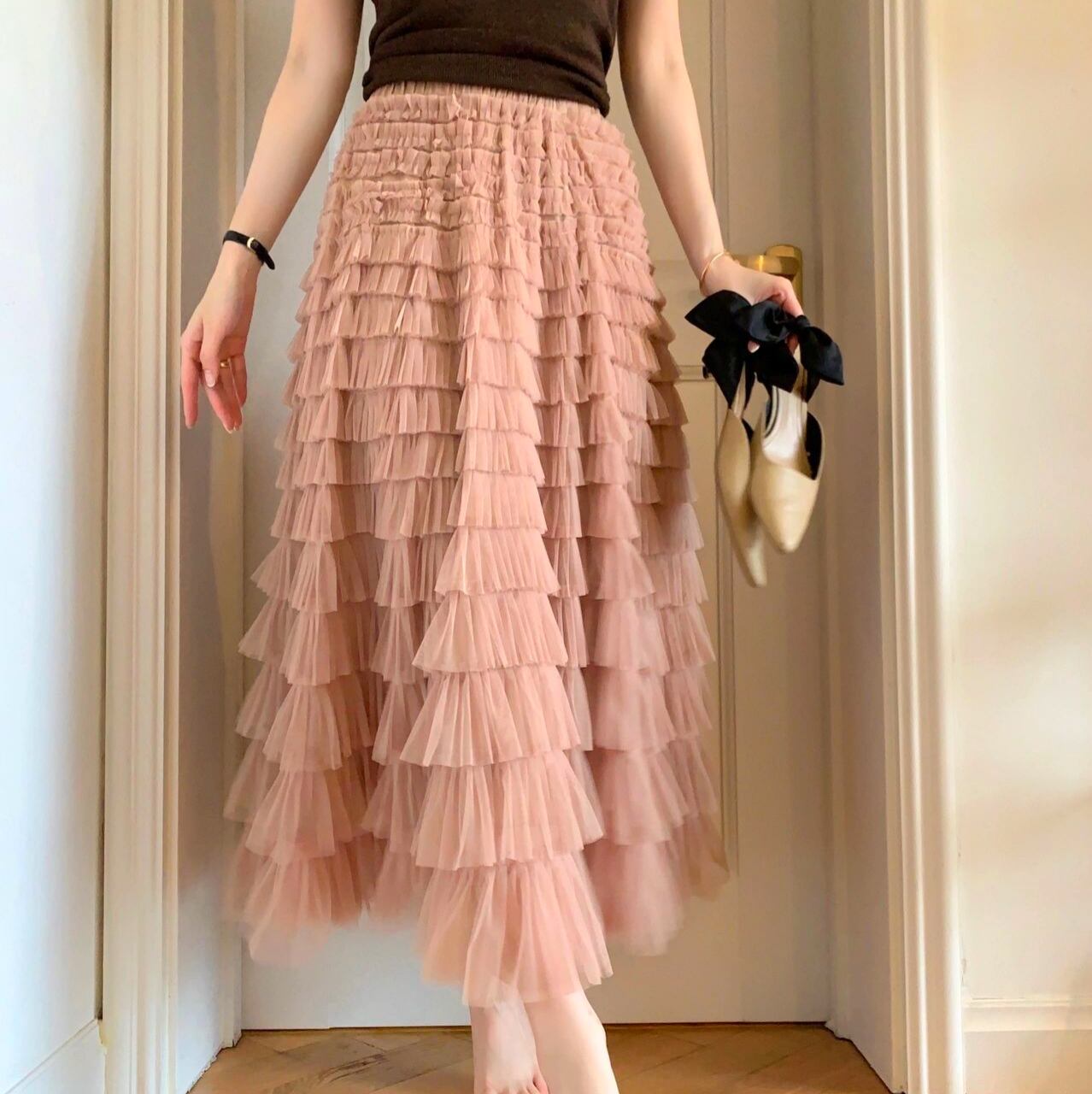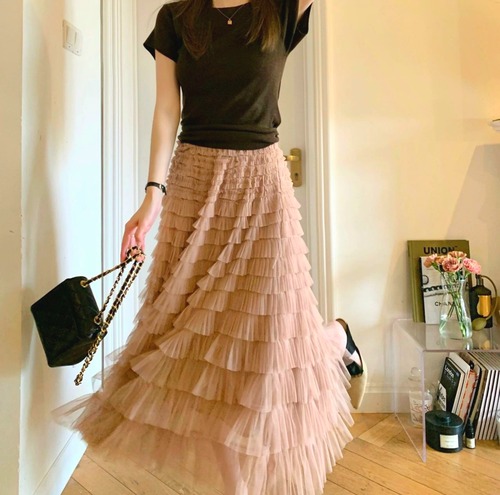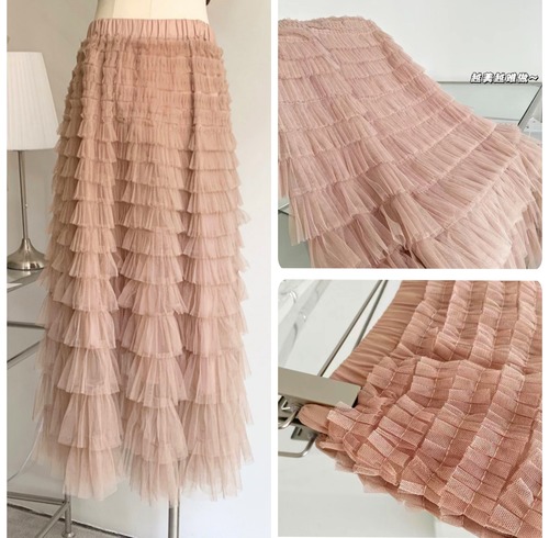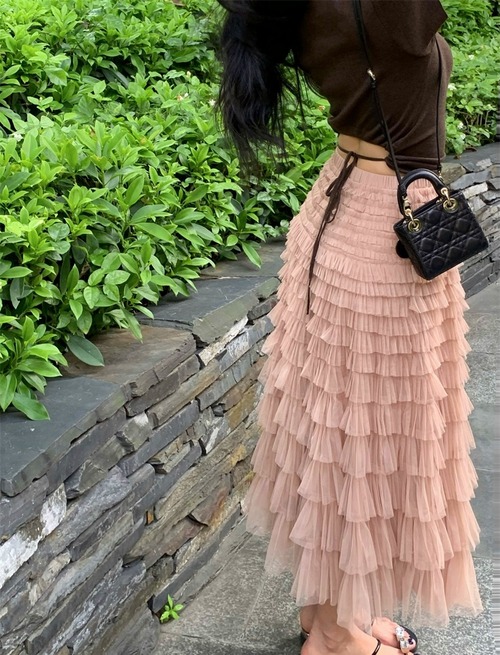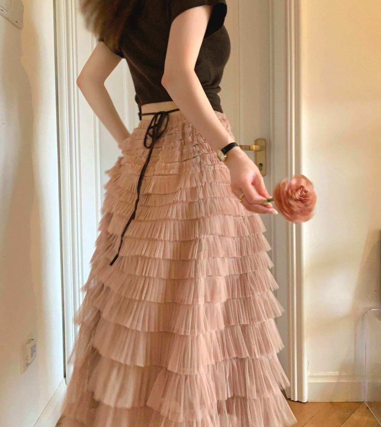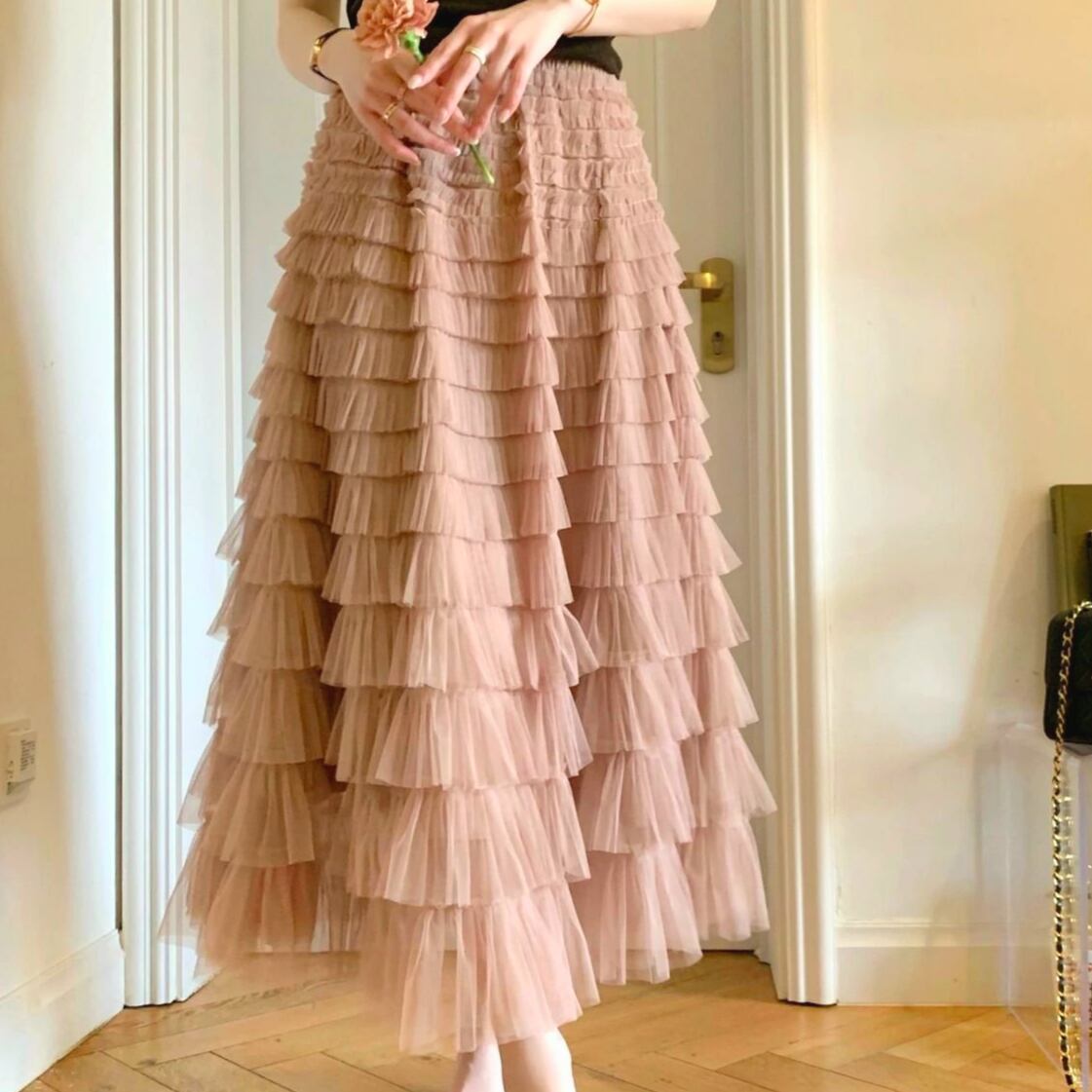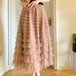 何段ものフリルがついた可愛いさのあるティアードロングスカート♪