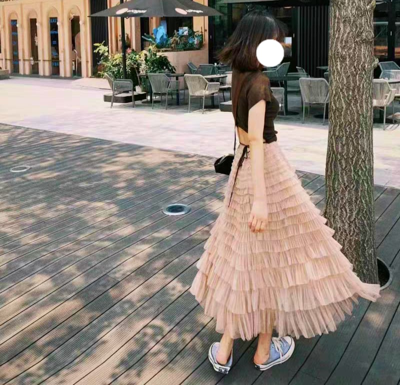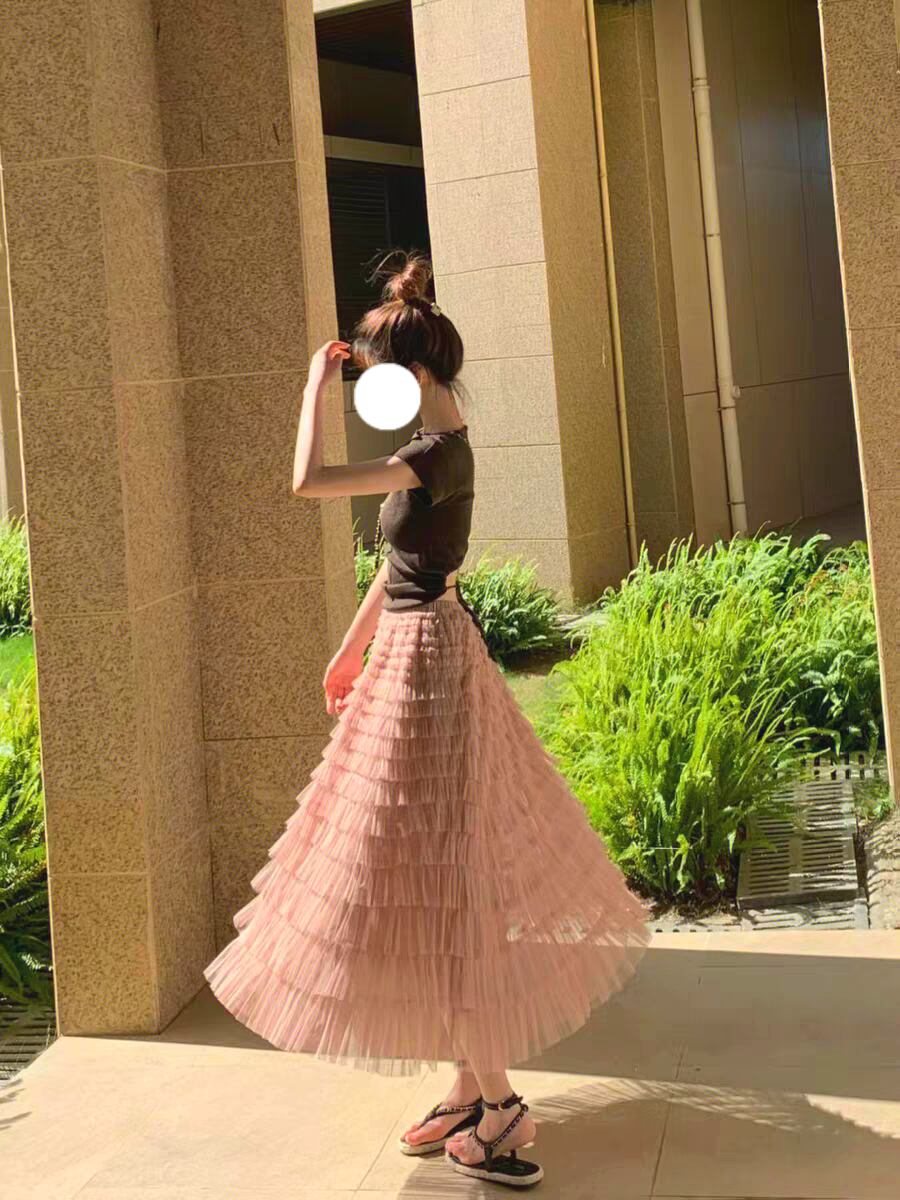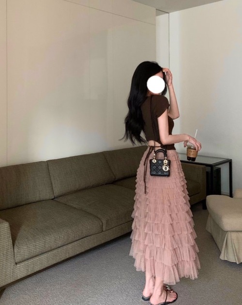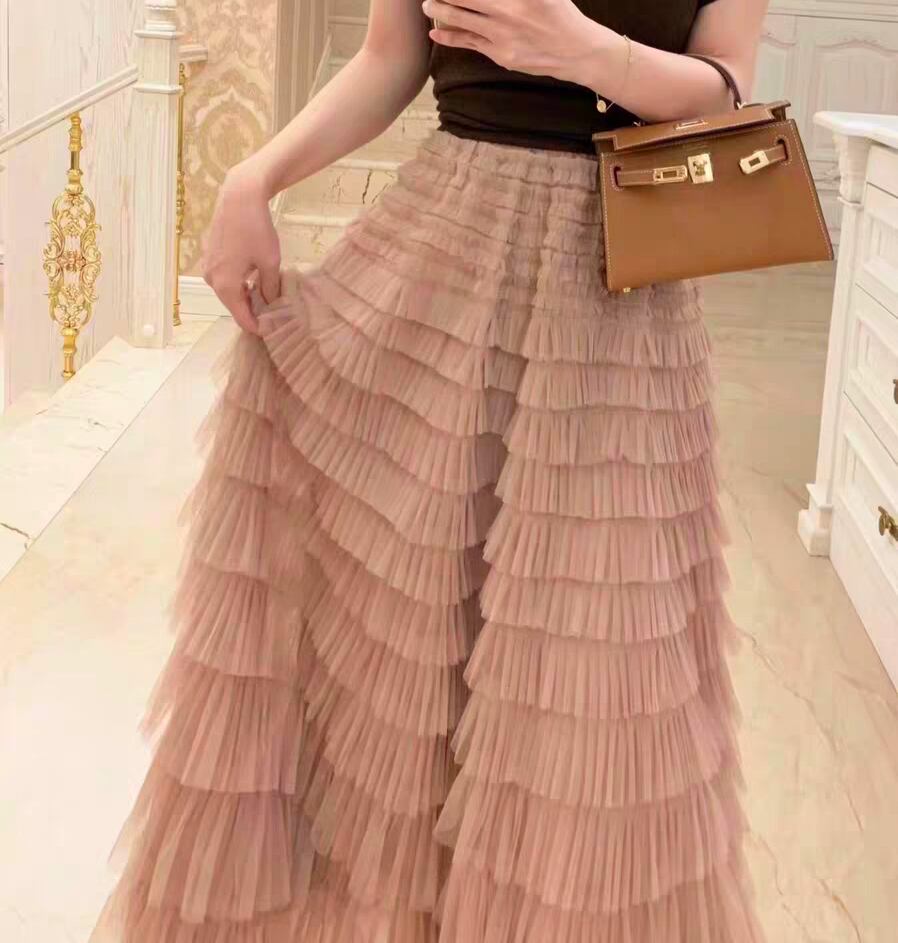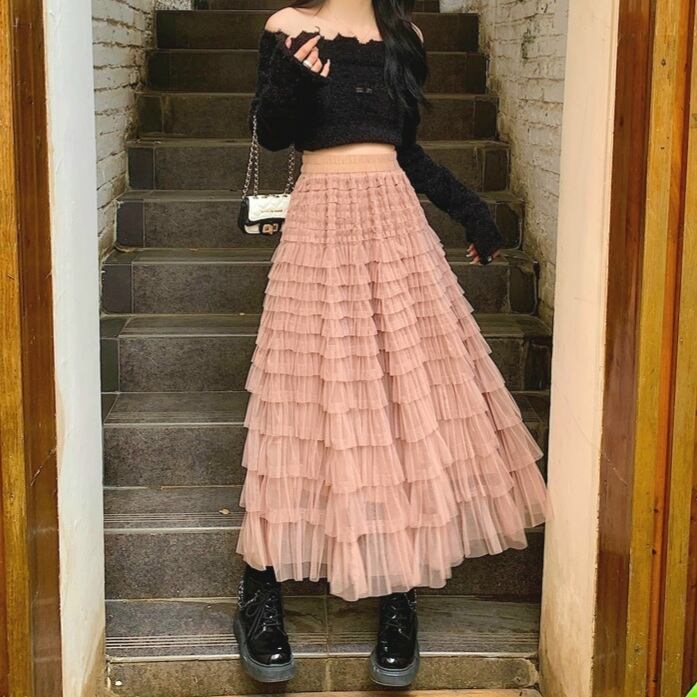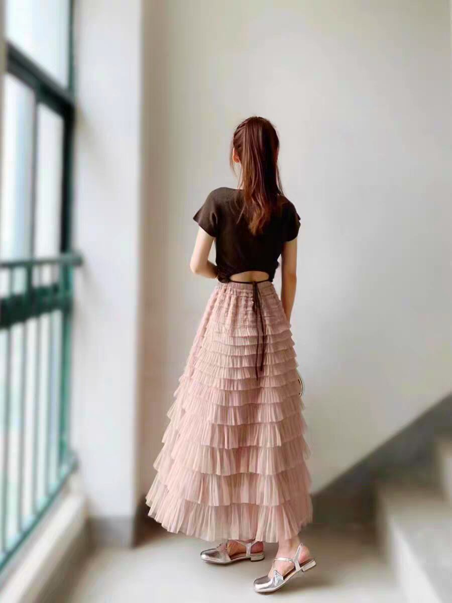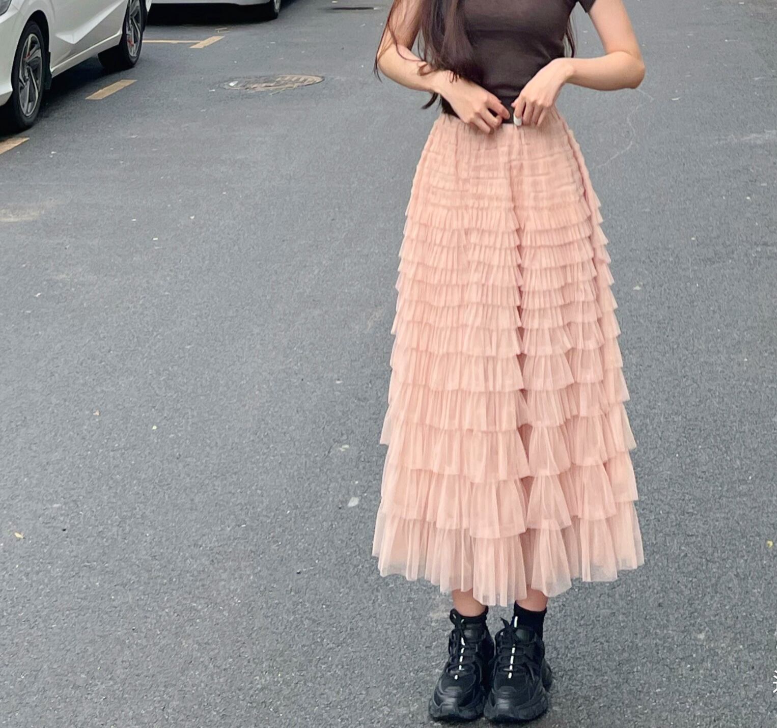 何段ものフリルがついた可愛いさのあるティアードロングスカート♪
