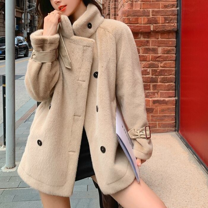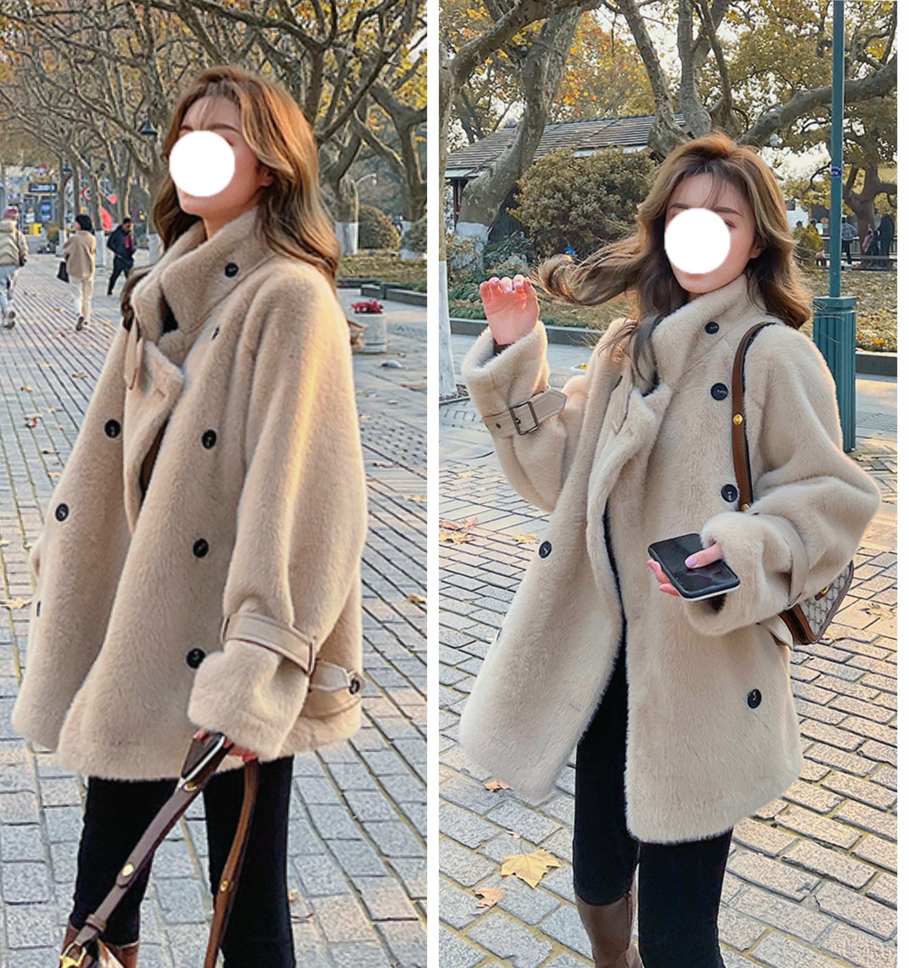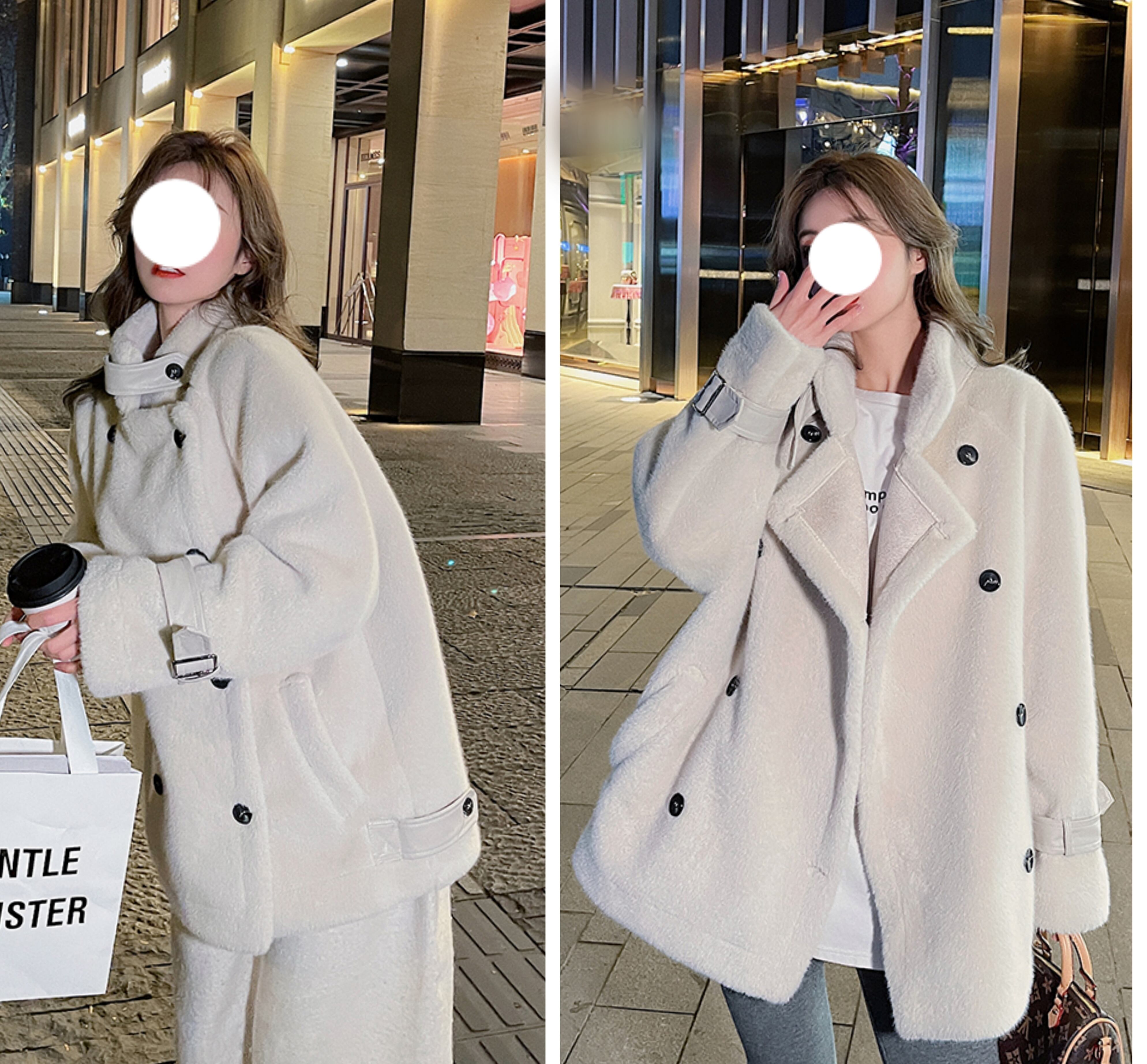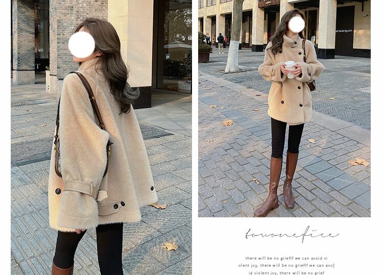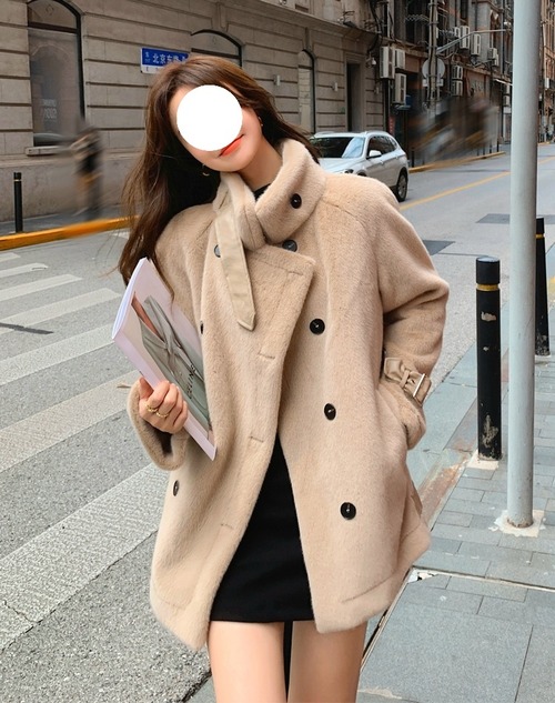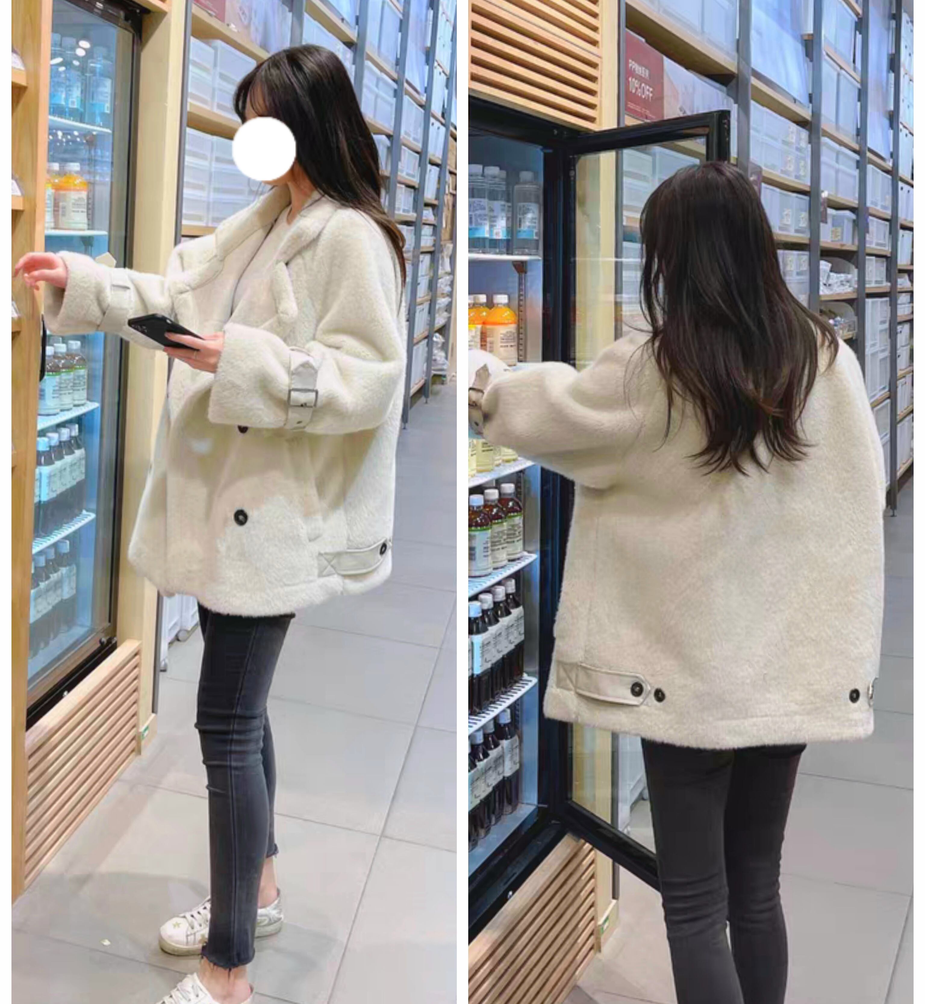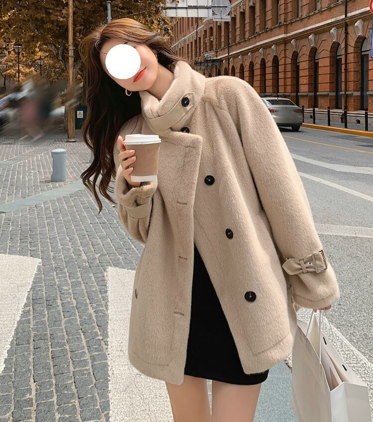 ブラックのダブルボタンと袖口のエコレザーベルトもさりげなくアクセントに♪