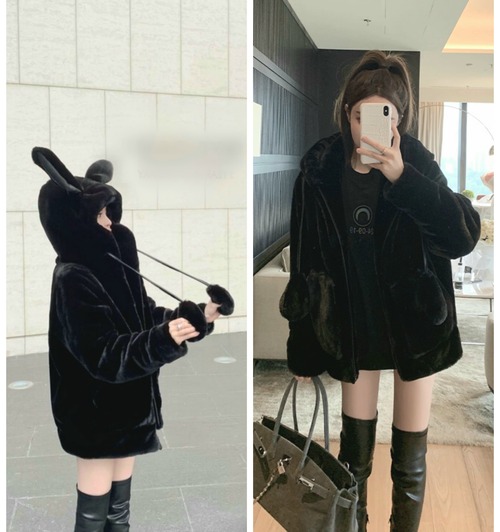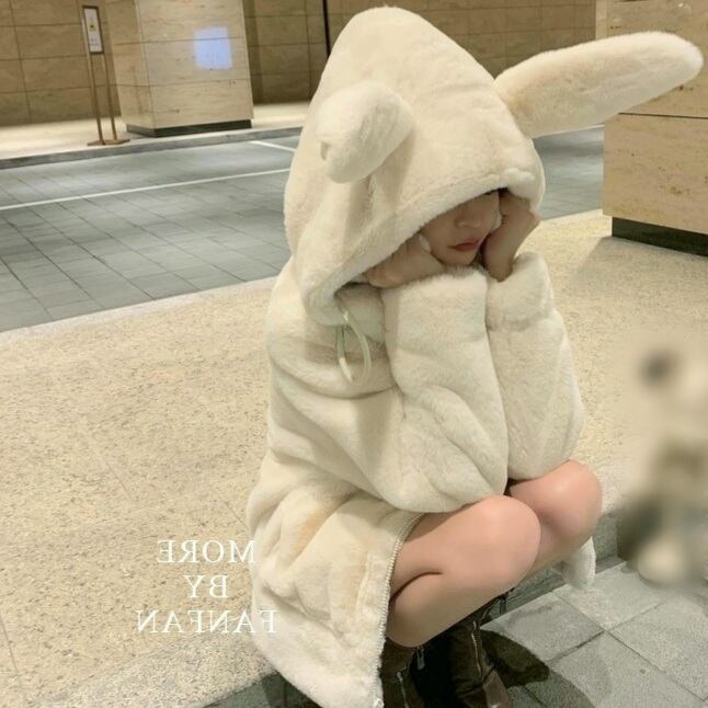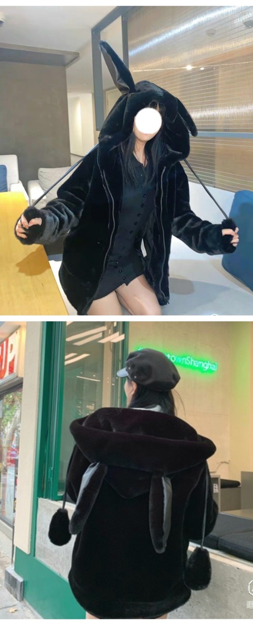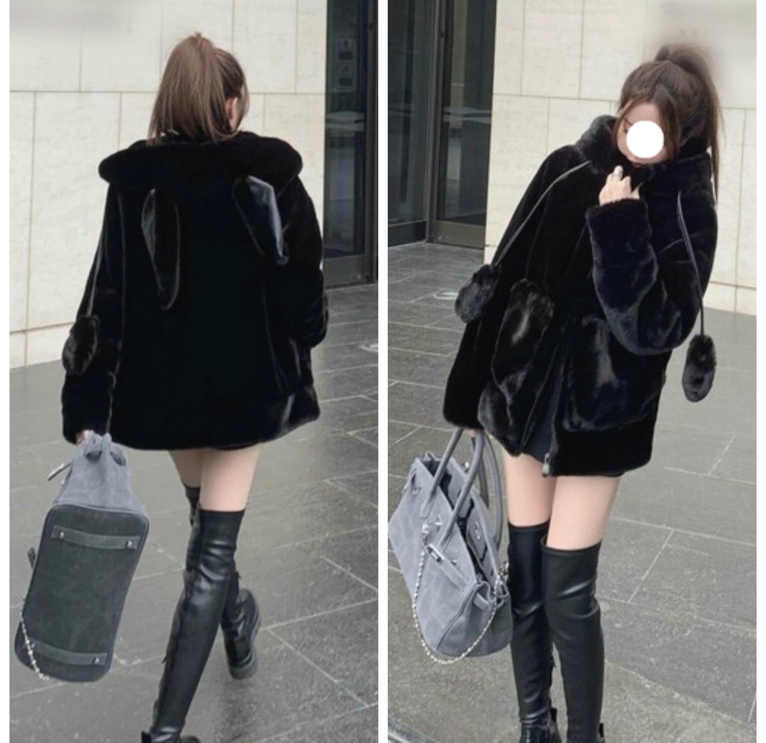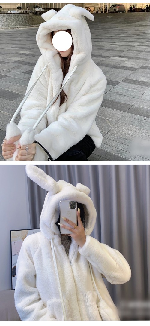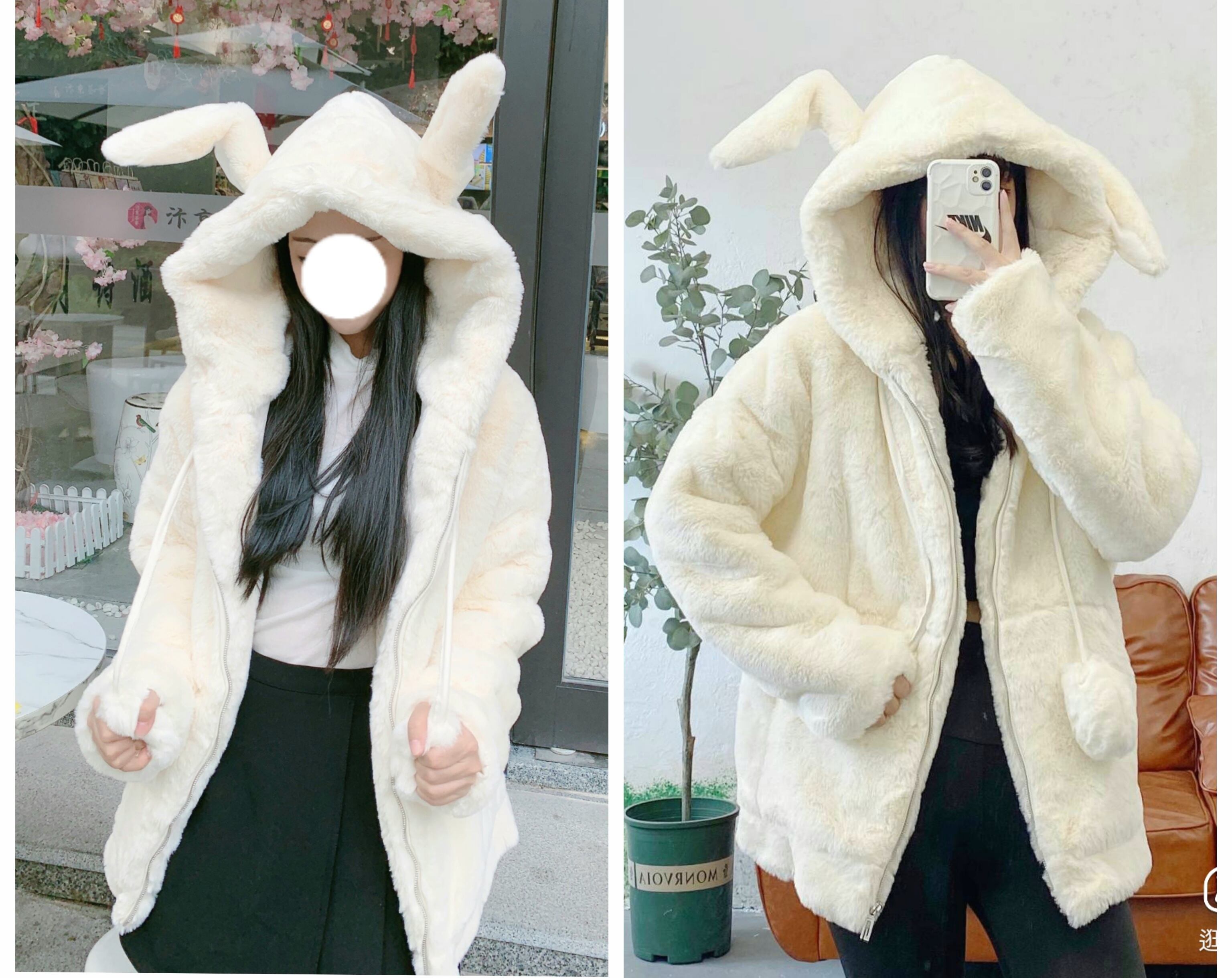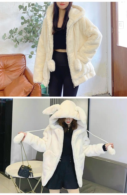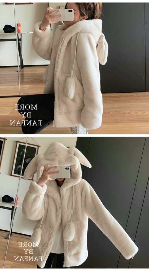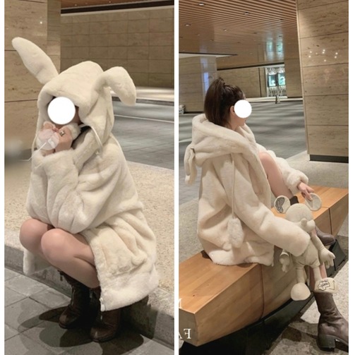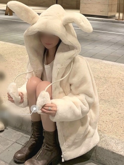 うさぎ耳 フード ファーコート オーバーサイズ 2color