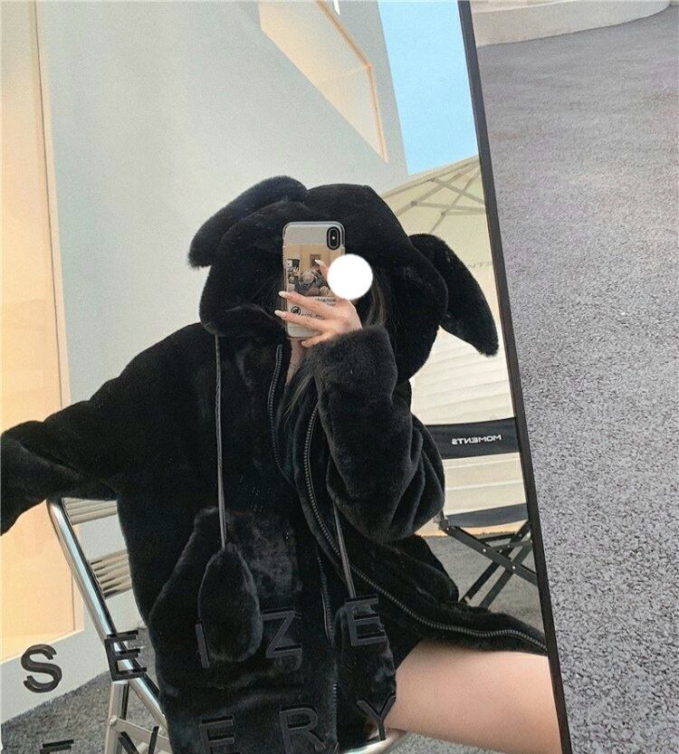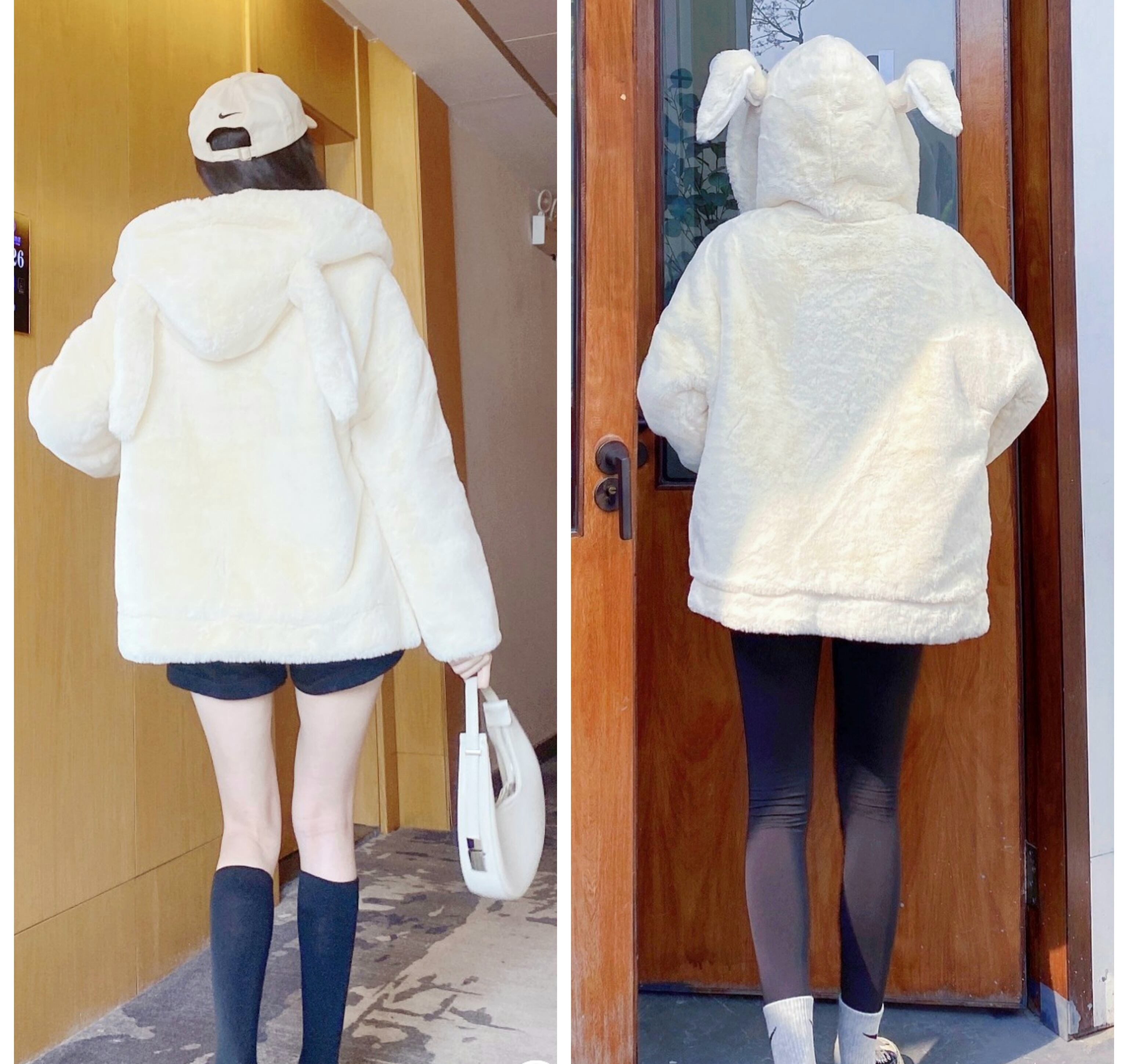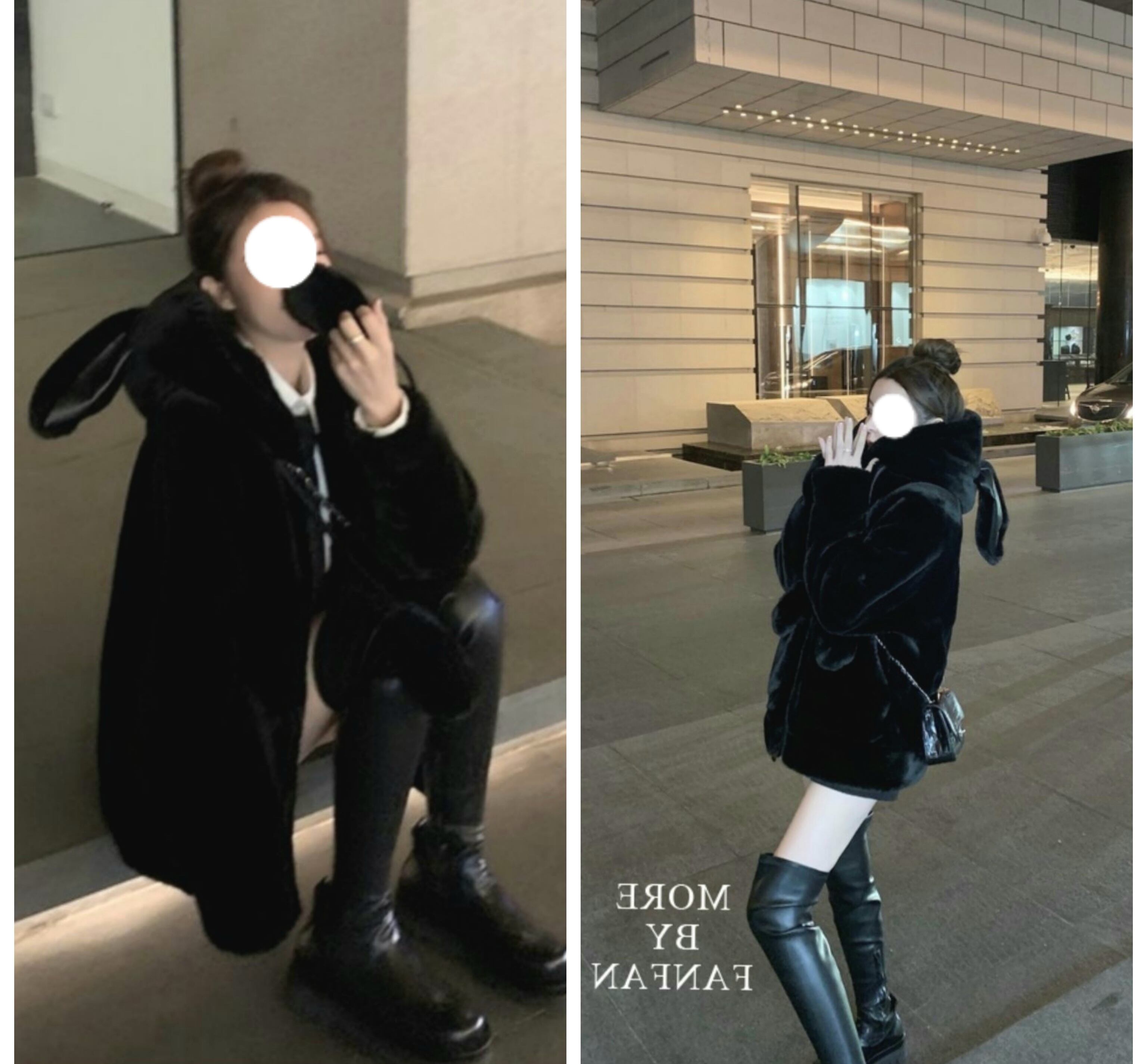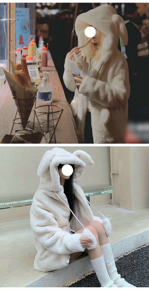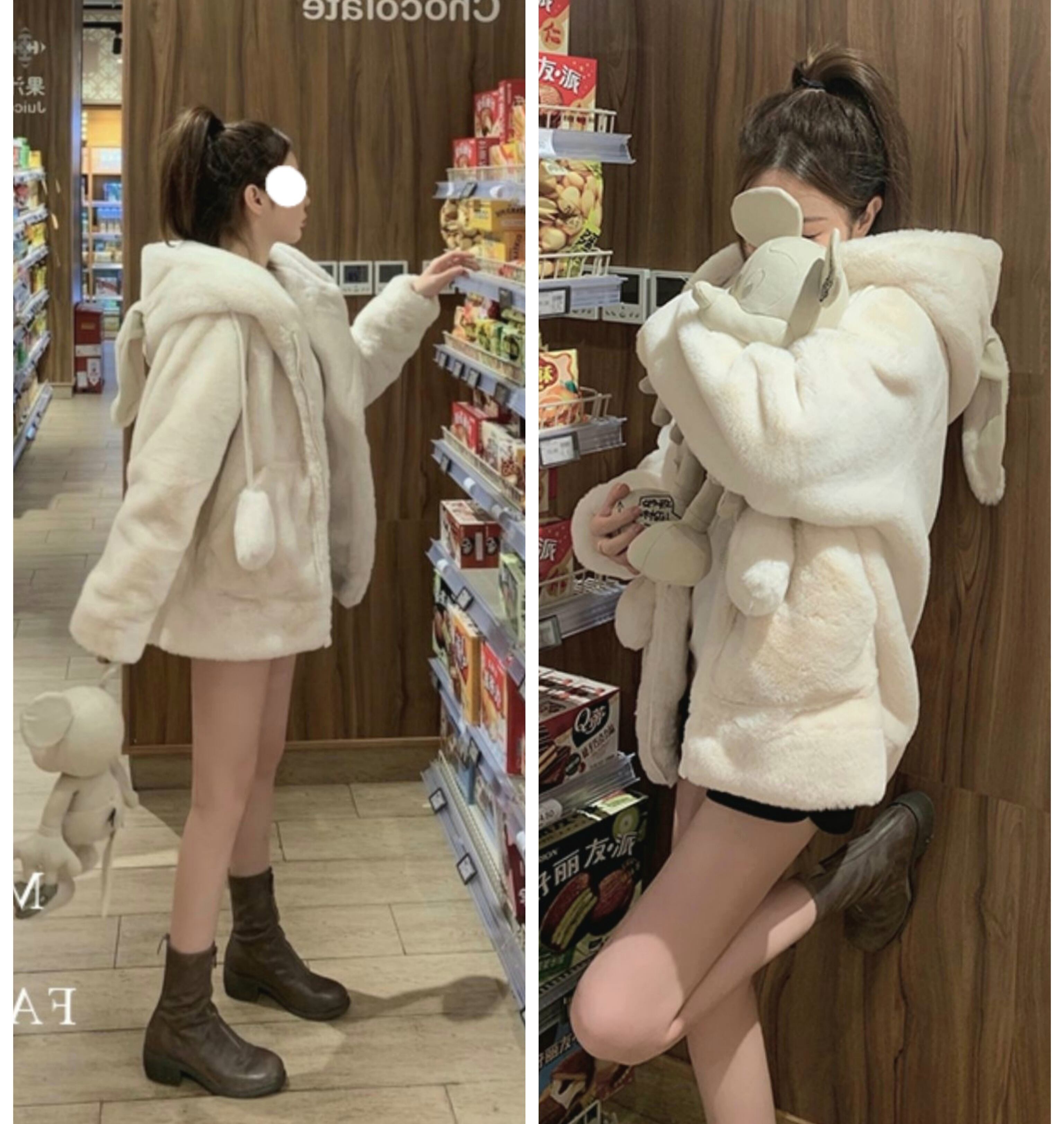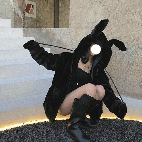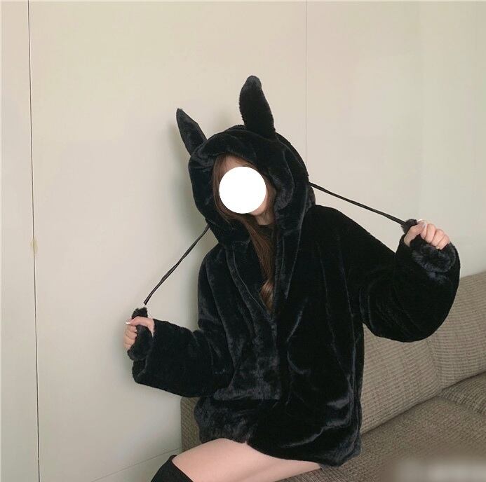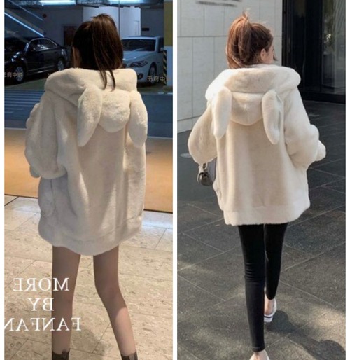 うさぎ耳 フード ファーコート オーバーサイズ 2color