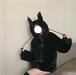 フードの紐に付いた取っ手を押すと耳が動きます♪