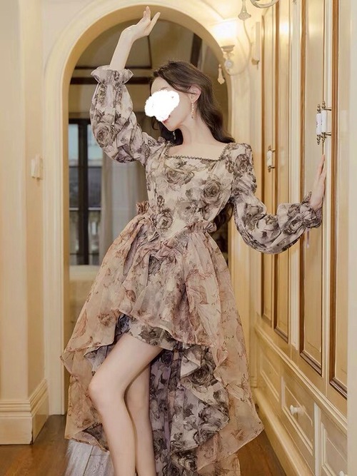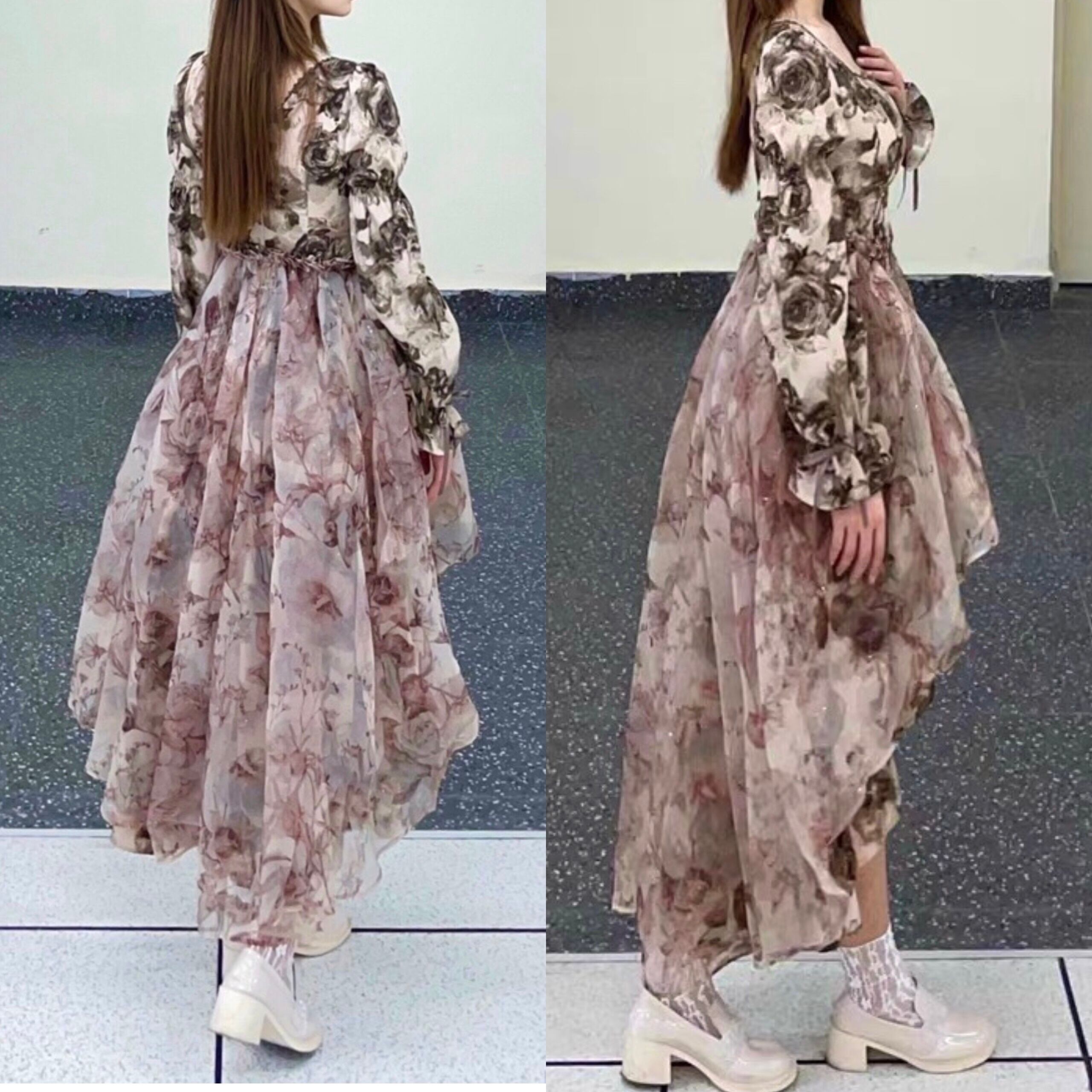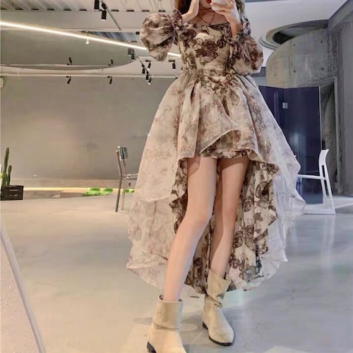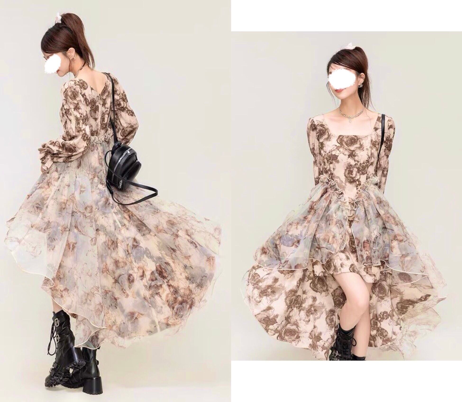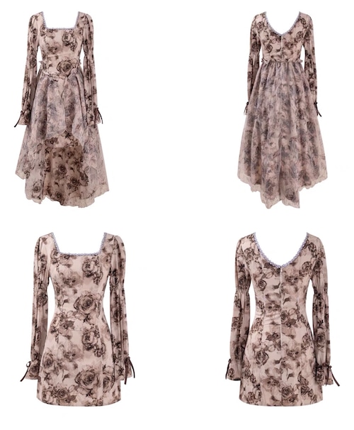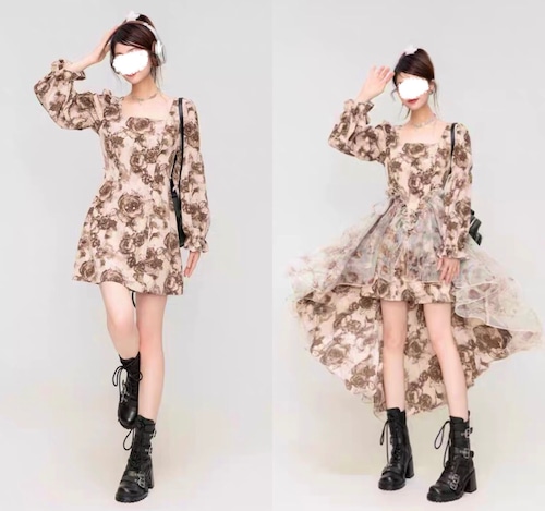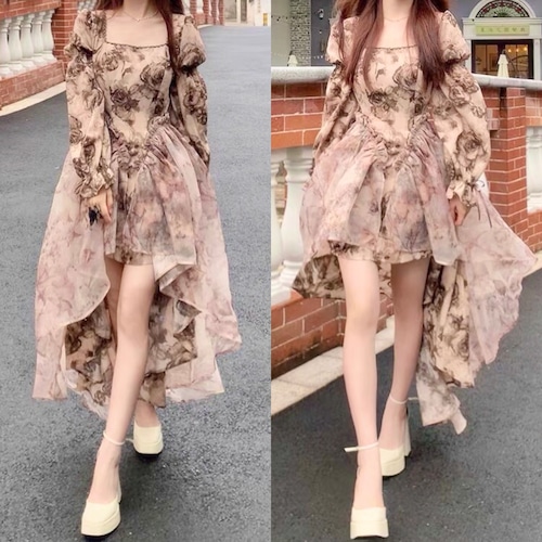 花柄 ミニワンピース ロングスカート 2way 総柄 長袖