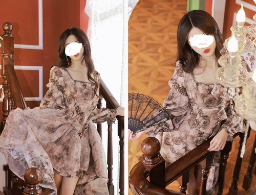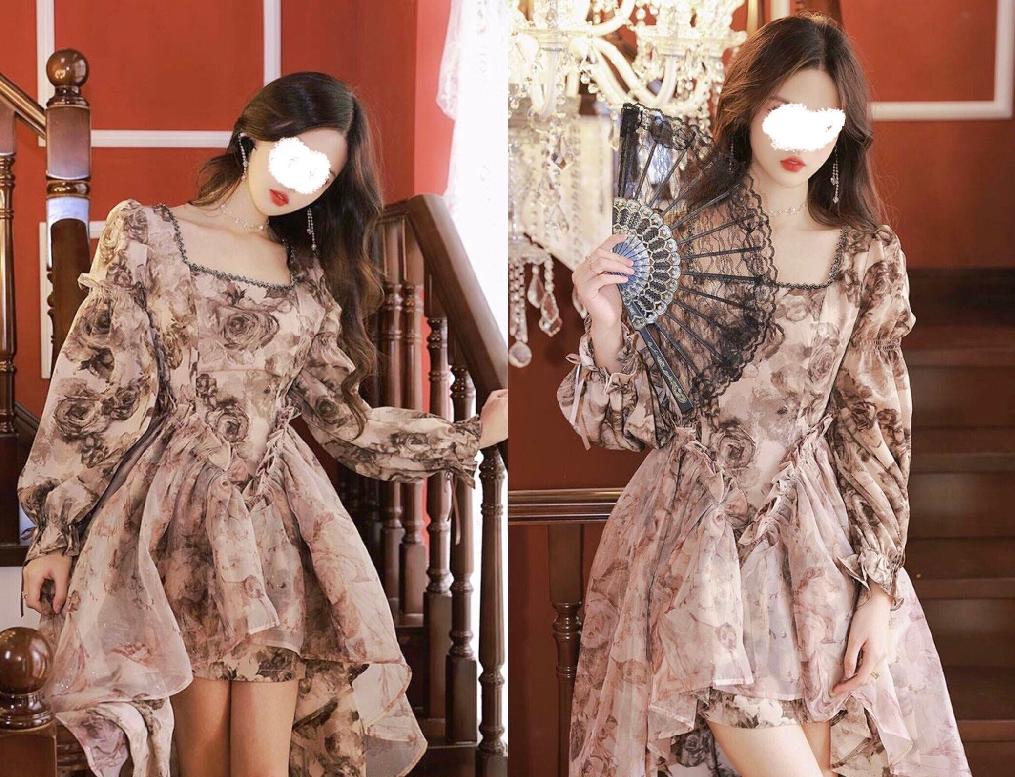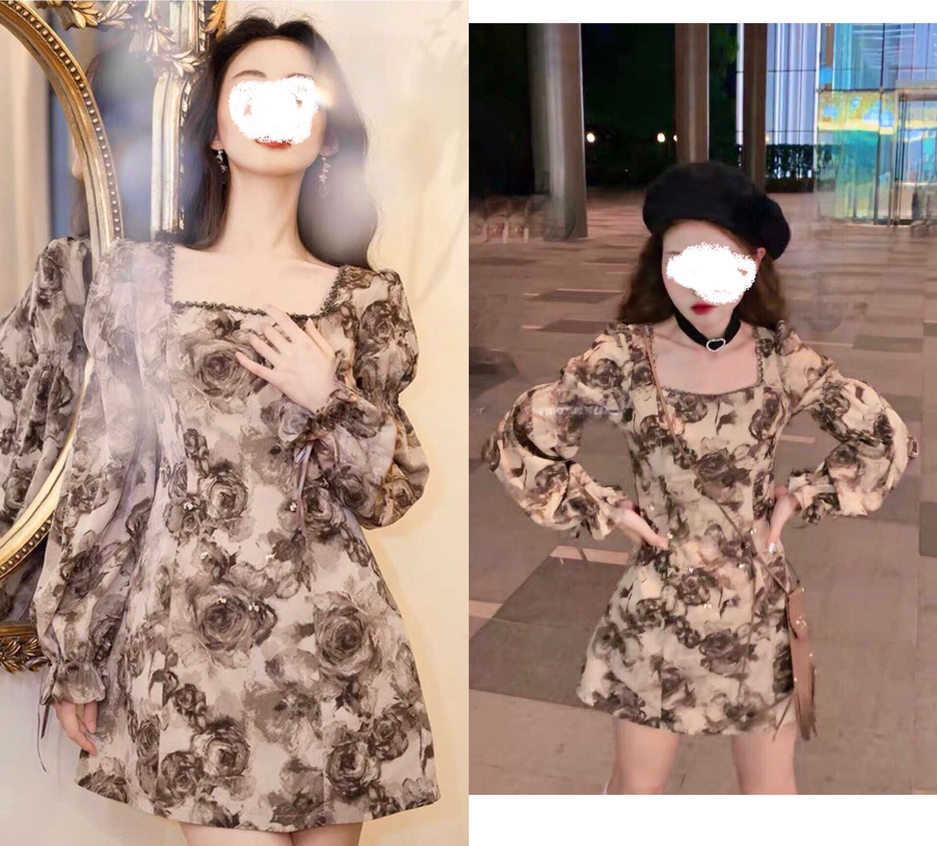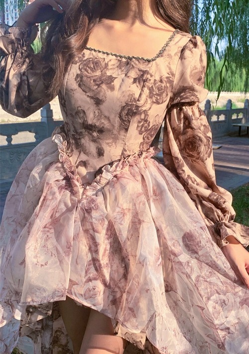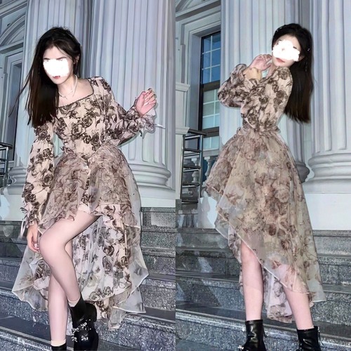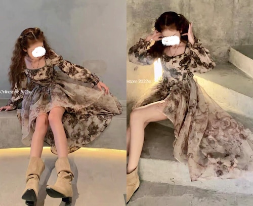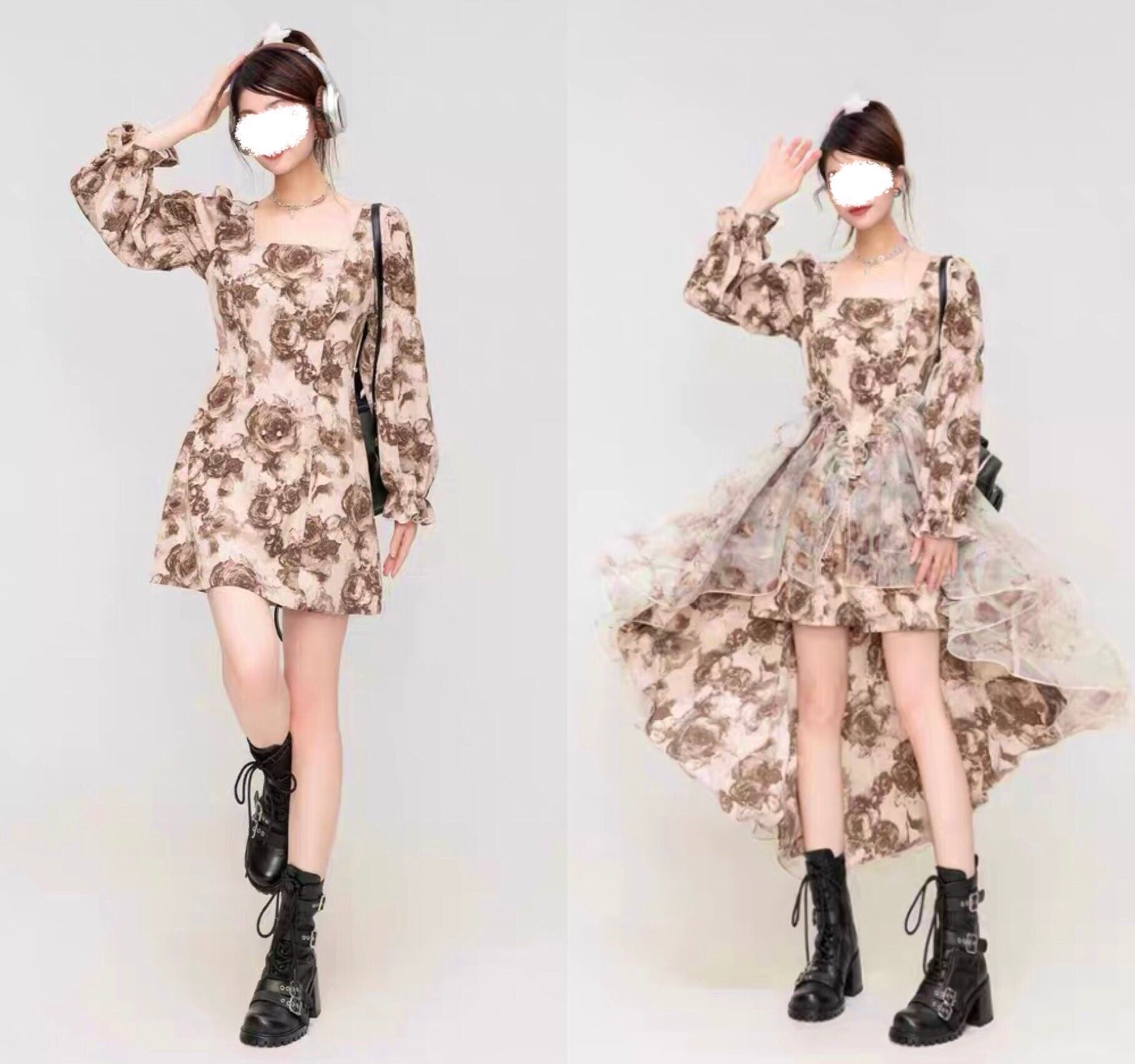 花柄 ミニワンピース ロングスカート 2way 総柄 長袖