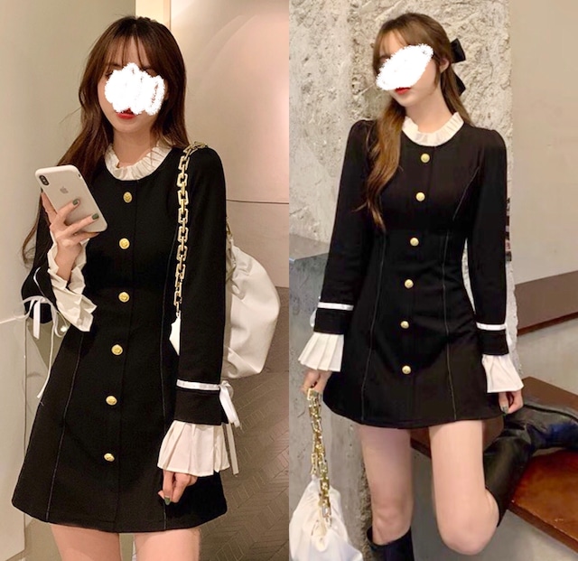 ハイネックでブラックのラインが引き締めてくれる大人なワンピース♪